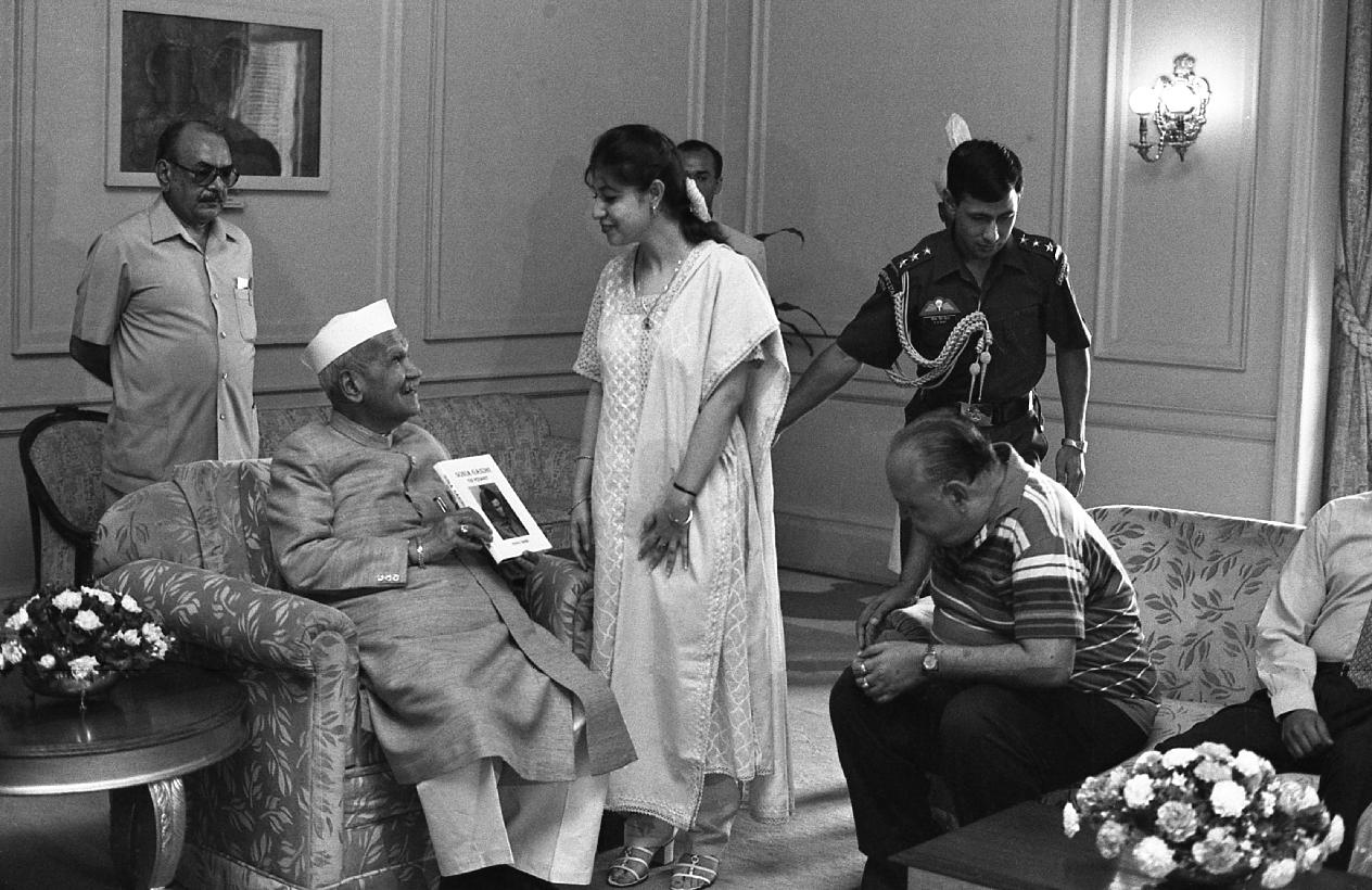 | Caption: | The President of India, Dr. Shankar Dayal Sharma receiving a copy of Book "Sonia Gandhi" from Kum. Pranika Sharma at Rashtrapati Bhavan in New Delhi on June 16, 1997. |