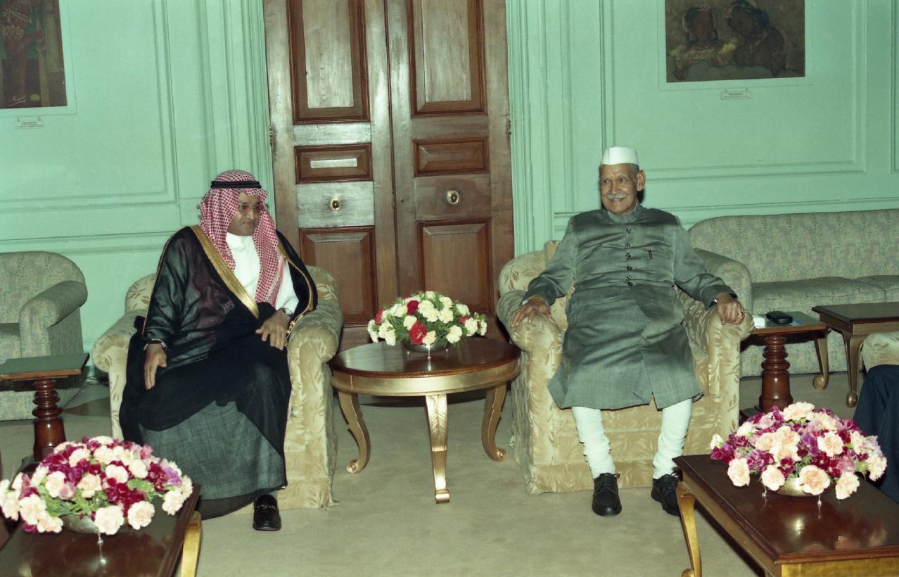 | Caption: | The Saudi Minister of Industry & Electricity and Co-Chairman, Indo-Saudi Joint Commission, HE Dr. Hashim Abdullah Yamani calling on the President of India, Dr. Shankar Dayal Sharma, at Rashtrapati Bhavan in New Delhi on June 12, 1997. |