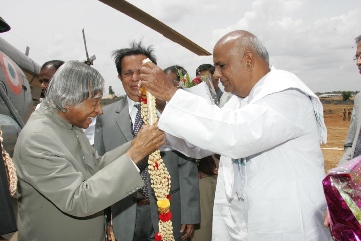 | Caption: | The President of India, Dr A P J Abdul Kalam being welcomed by Shri Konijeti Rosaiah at Hassan Helipad in Karnataka on June 08, 2007 |