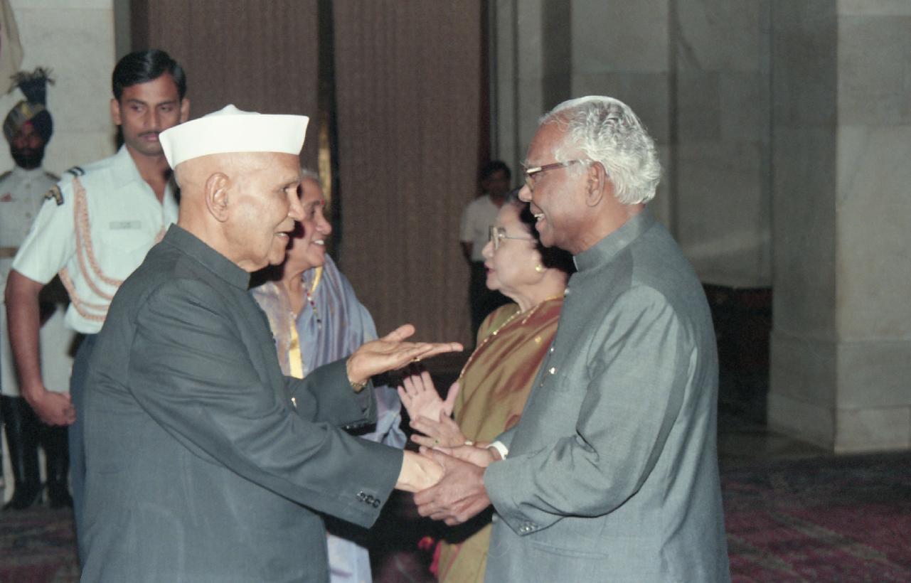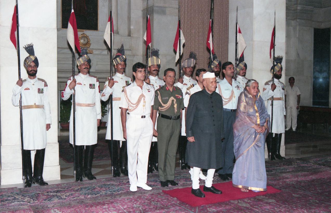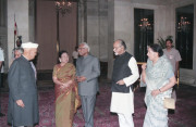 | Caption: | The President of India, Dr. Shankar Dayal Sharma attending dinner to the President Elect, Prime Minister and Council of Ministers at Rashtrapati Bhavan in New Delhi on July 19, 1997 |