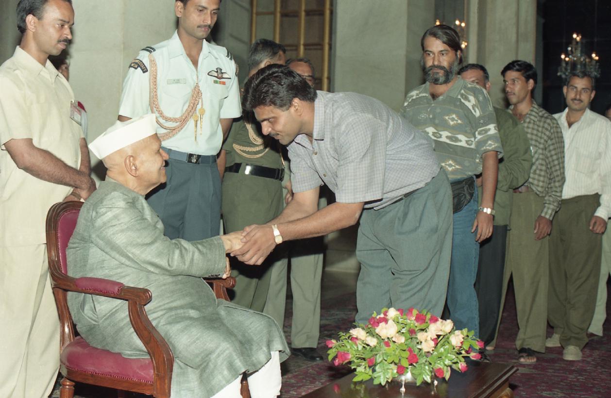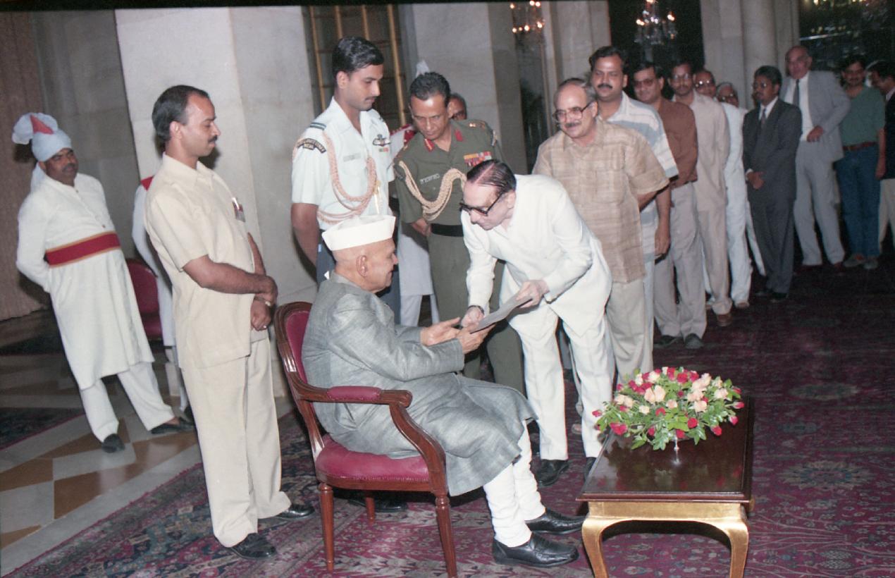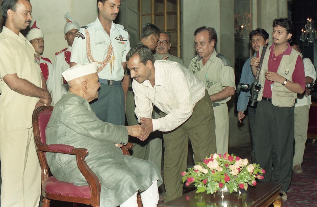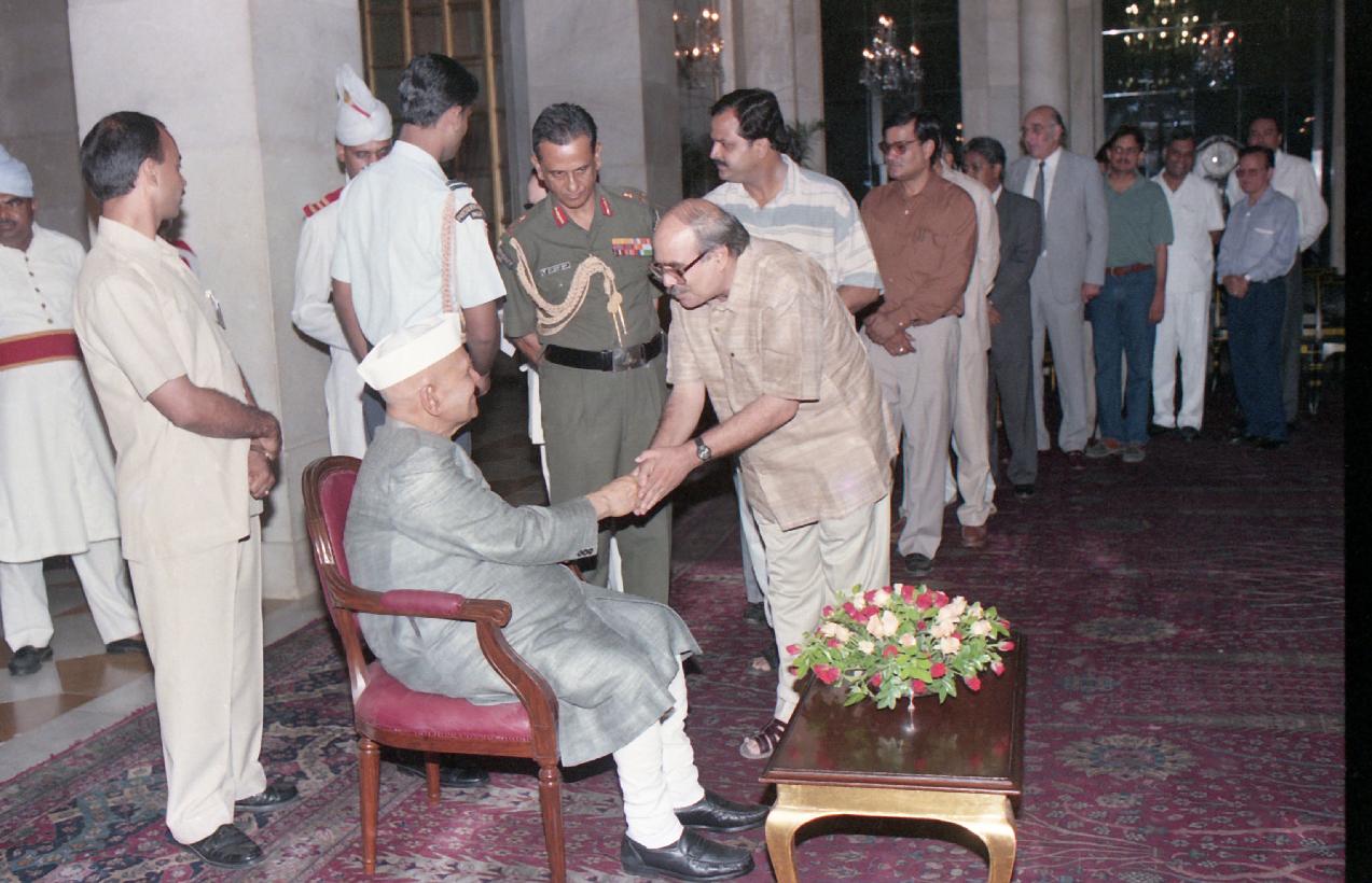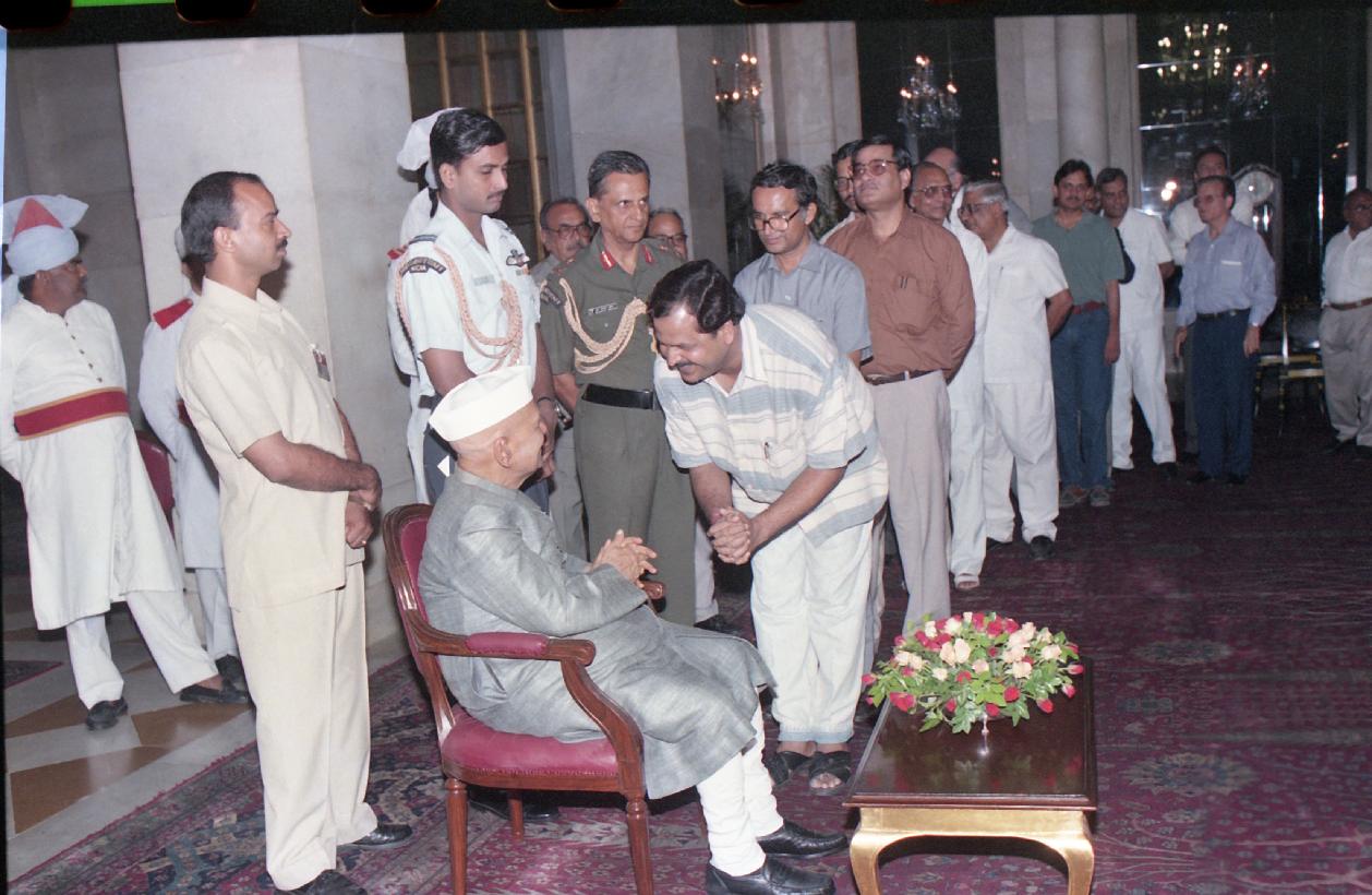 | Caption: | The President of India, Dr. Shankar Dayal Sharma interacting with Press members, at Rashtrapati Bhavan in New Delhi on July 20, 1997 |