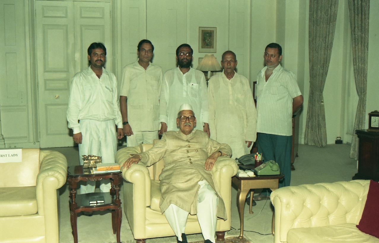 | Caption: | The President of India, Dr. Shankar Dayal Sharma receiving copy of Books "Kalame Naqsh" & "Dharkan" from Shri Mahesh Chand Naqsh with others at Rashtrapati Bhavan in New Delhi on June 26, 1997. |