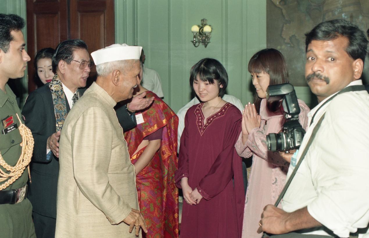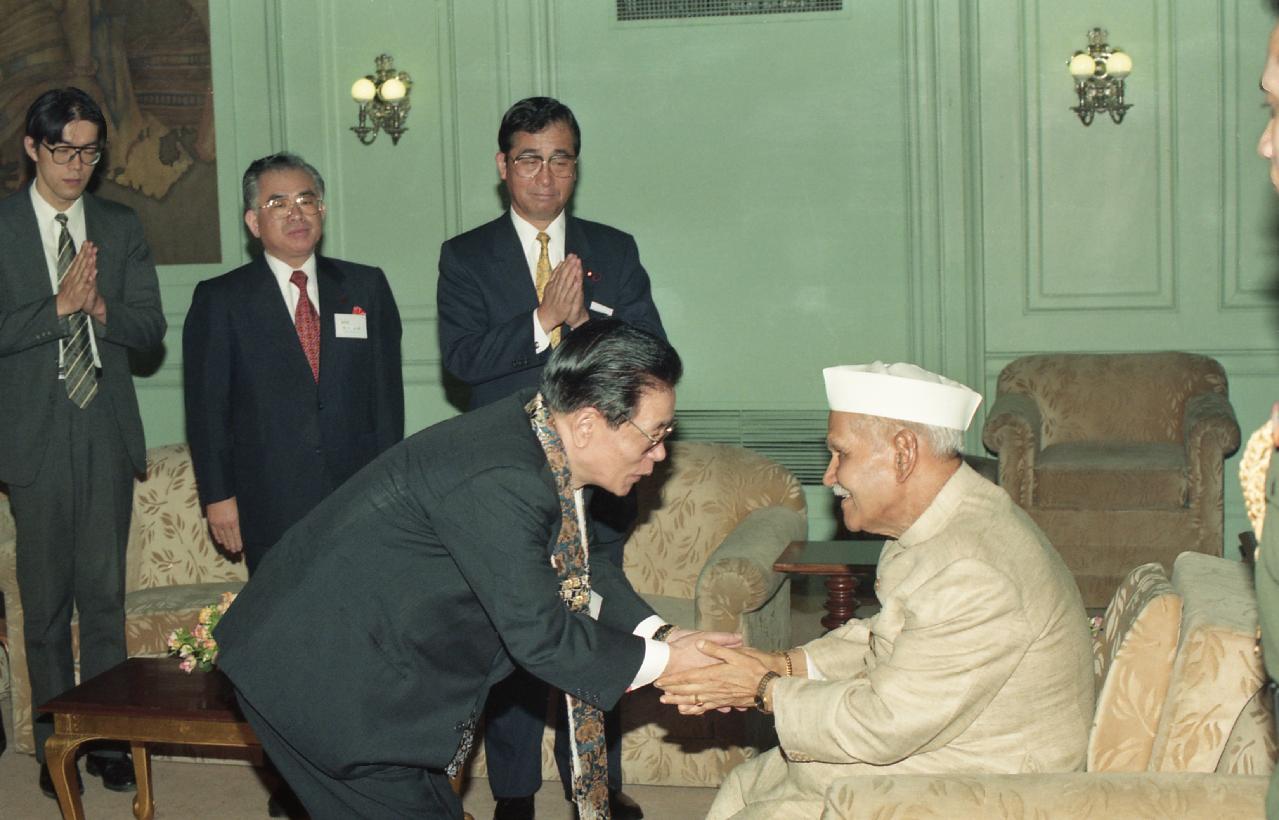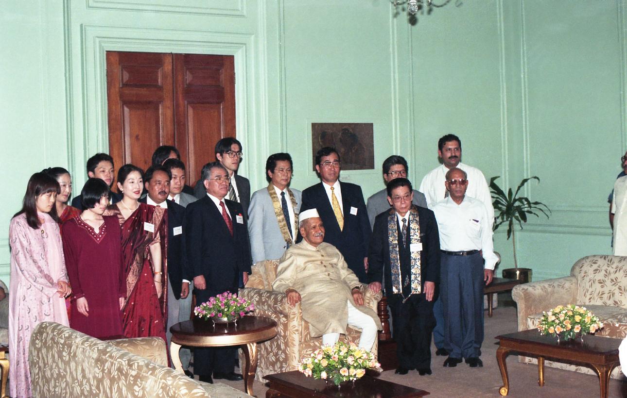 | Caption: | The President of India, Dr. Shankar Dayal Sharma meeting with Rev. D.S. Uchida, Priest of Daikoji Temple, Japan with others at Rashtrapati Bhavan in New Delhi on June 27, 1997. |