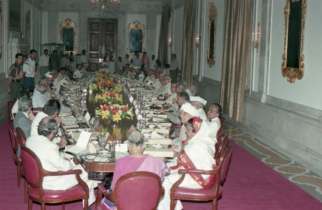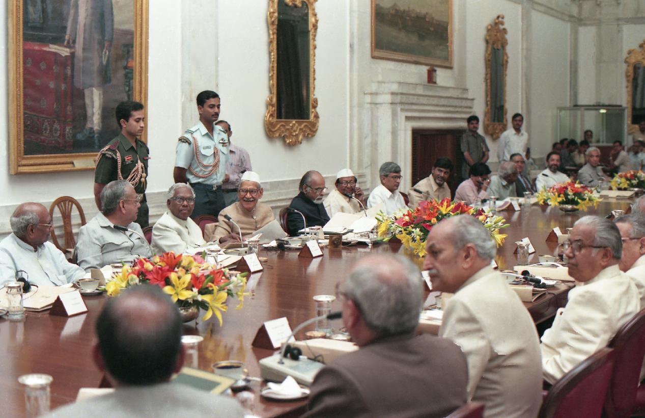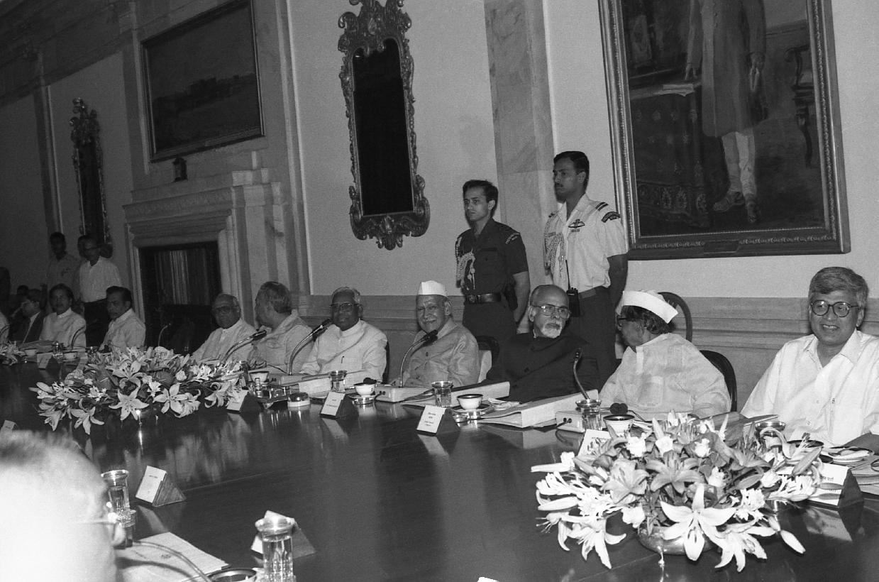| Caption: | The President of India, Dr. Shankar Dayal Sharma attending the Governors Conference at Rashtrapati Bhavan in New Delhi on June 02, 1997. |