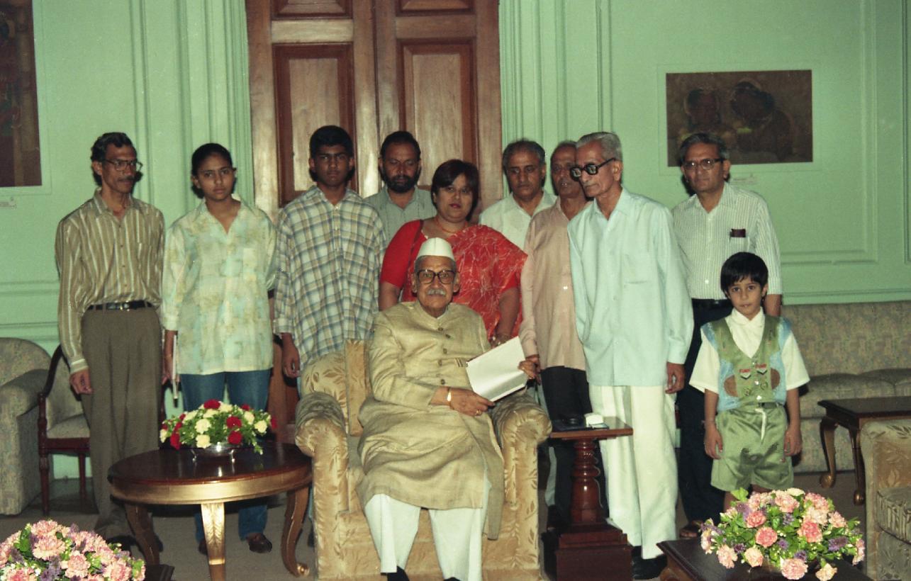 | Caption: | The President of India, Dr. Shankar Dayal Sharma receiving a copy of Book "Bhartiya Lekhikaon Se Sakshatkar" from Dr. Ranvir Rangra at Rashtrapati Bhavan in New Delhi on June 21, 1997. |