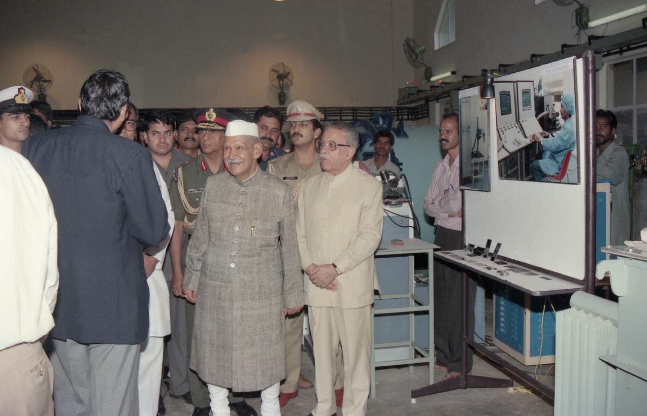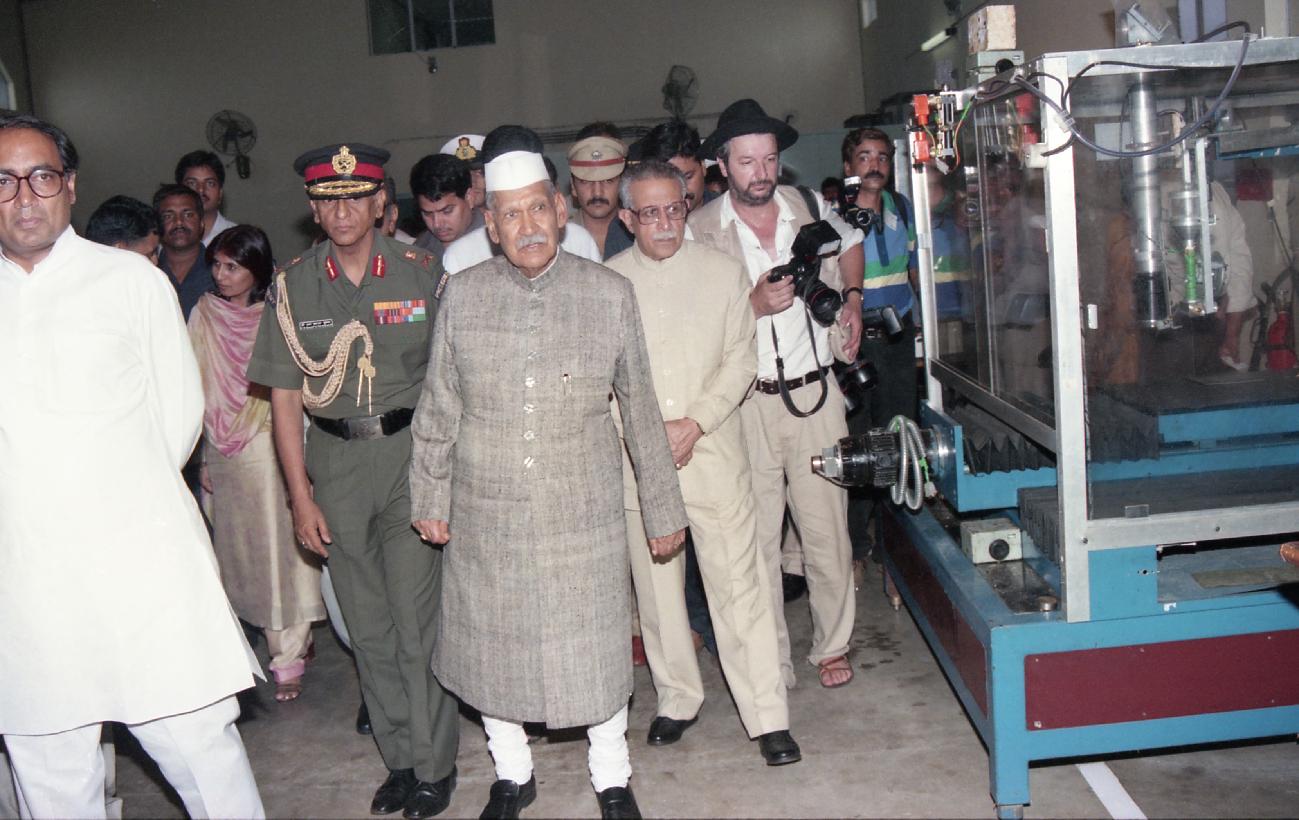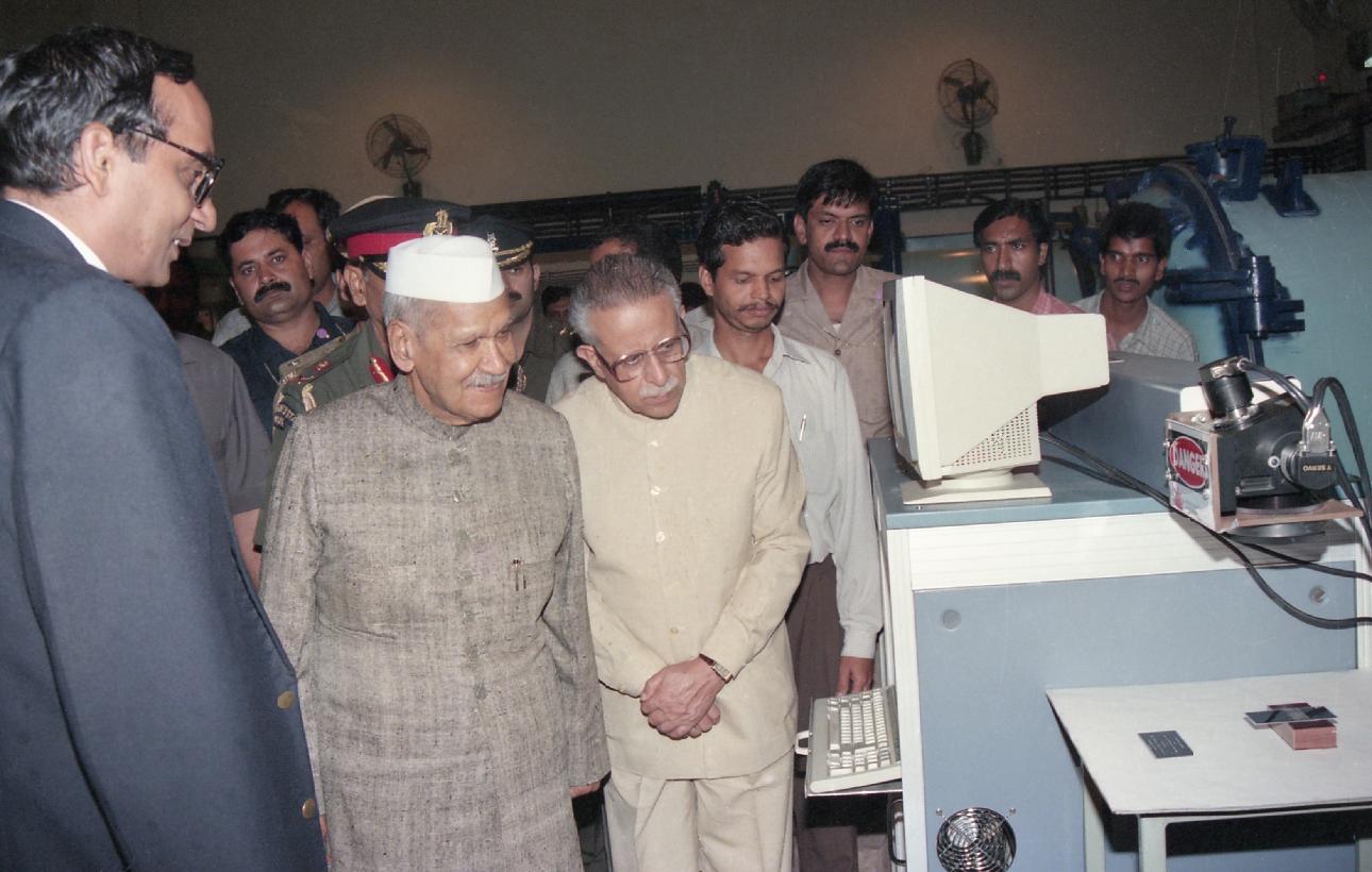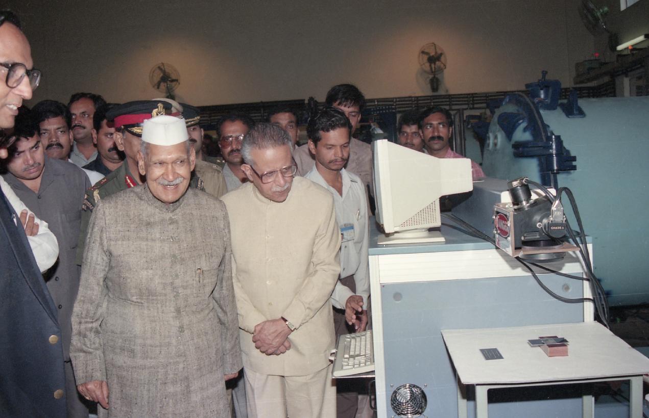 | Caption: | The President of India, Dr. Shankar Dayal Sharma unveiling the plaque to lay the foundation stone of INDUS-2 and visits the Centre for Advanced Technology, at Indore, Madhya Pradesh on June 28, 1997. |