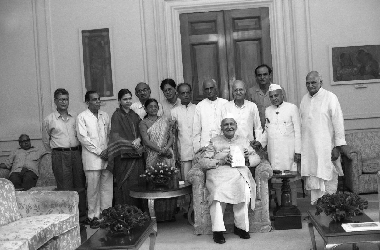| Caption: | The President of India, Dr. Shankar Dayal Sharma receiving the copy of Books "Tilak Kare Raghuvir" & "Bhakti Ganga" from Shri Gulab Khandelwal at Rashtrapati Bhavan in New Delhi on July 09, 1997 |