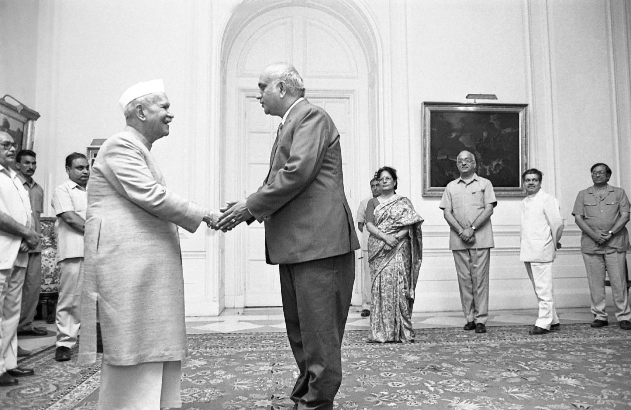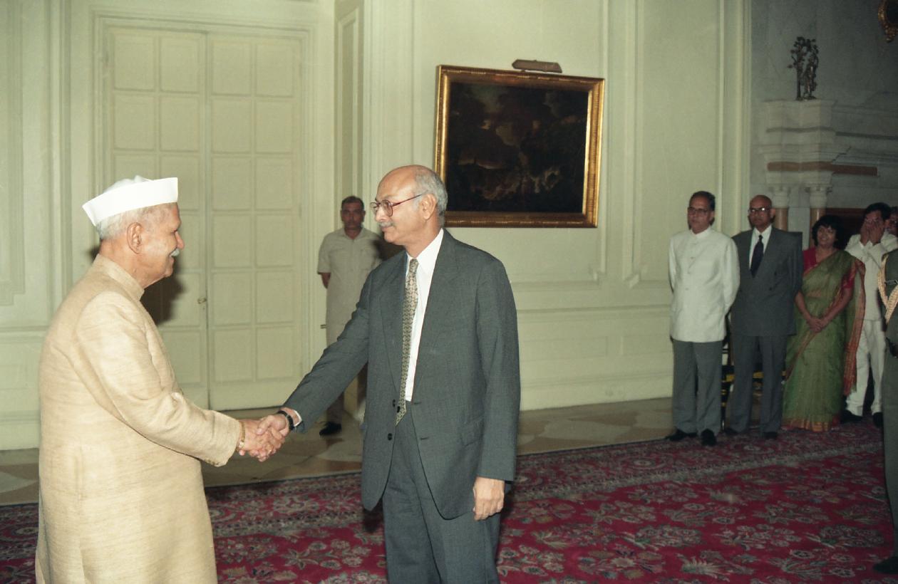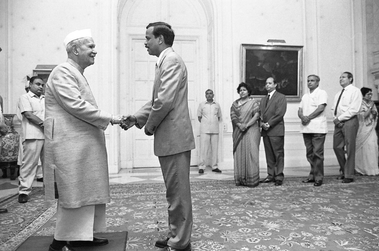 | Caption: | The President of India, Dr. Shankar Dayal Sharma meeting with the Officers of Madhya Pradesh posted in Delhi at Rashtrapati Bhavan in New Delhi on July 10, 1997 |