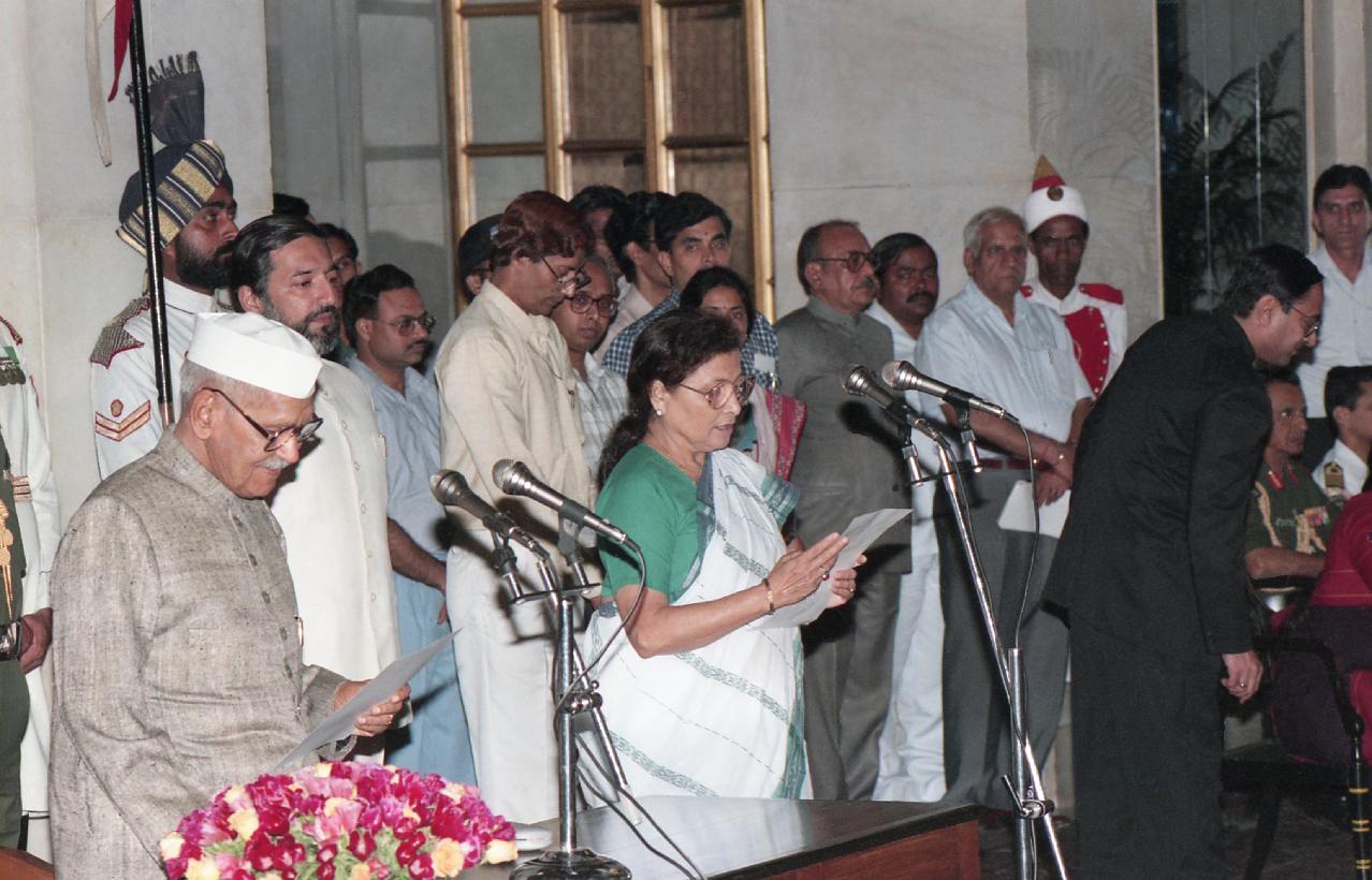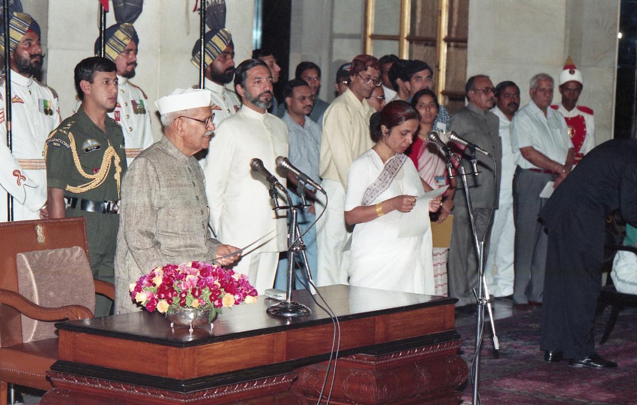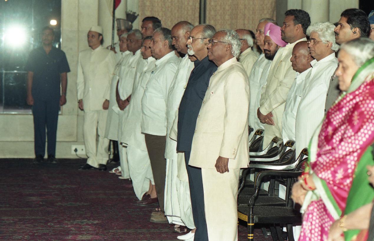 | Caption: | The President of India, Dr. Shankar Dayal Sharma administering the oath to the Council of Ministers, at a Swearing-in Ceremony, at Rashtrapati Bhavan in New Delhi on June 03, 1997. |