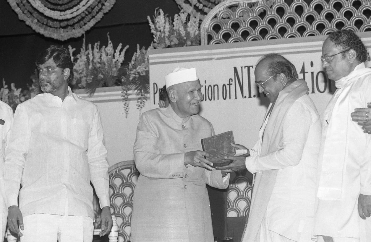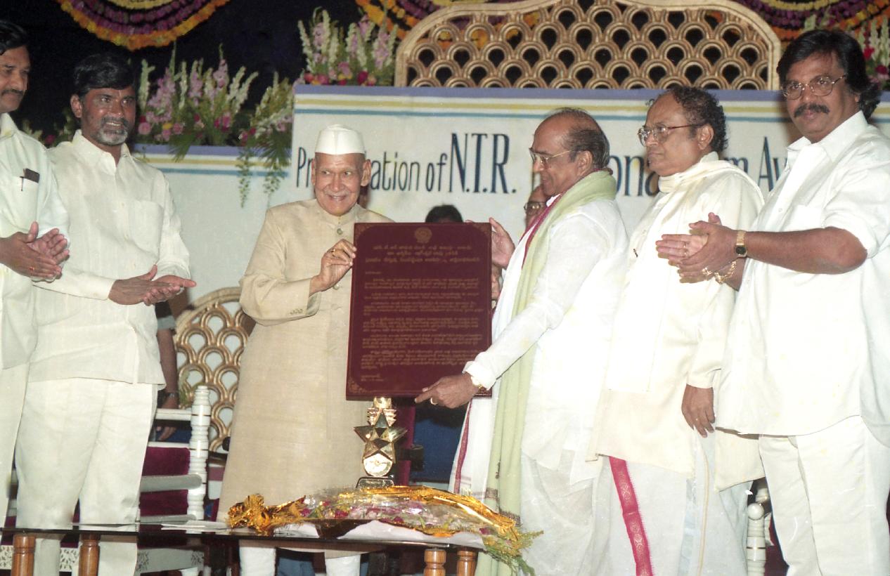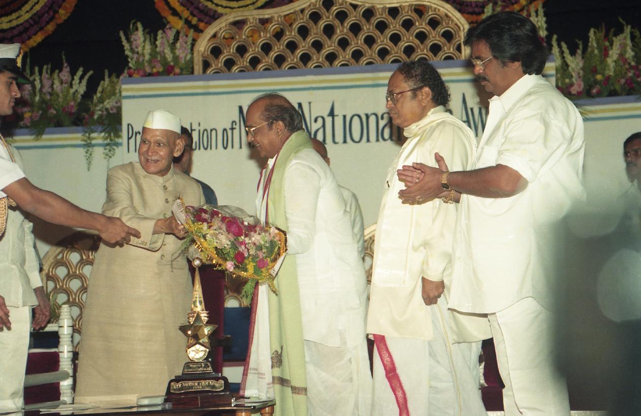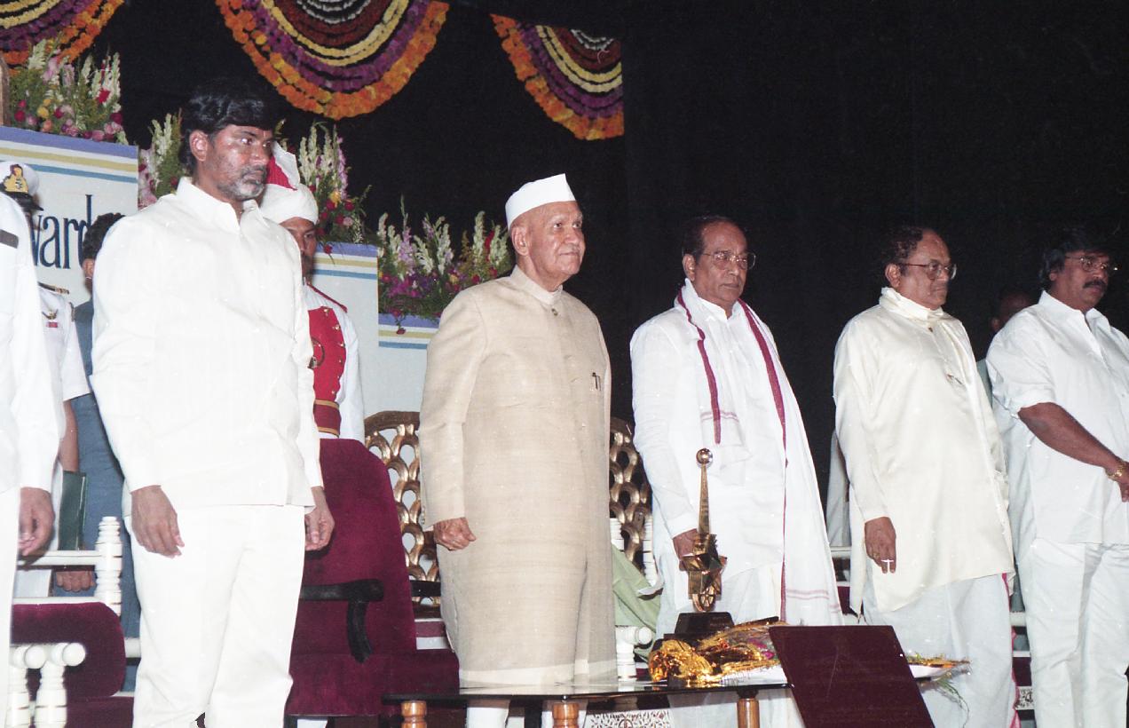 | Caption: | The President of India, Dr. Shankar Dayal Sharma presenting N.T.R. National Film Award-1996 at Ravindra Bharati, in Hyderabad, Andhra Pradesh on November 01, 1996. |