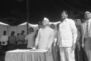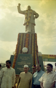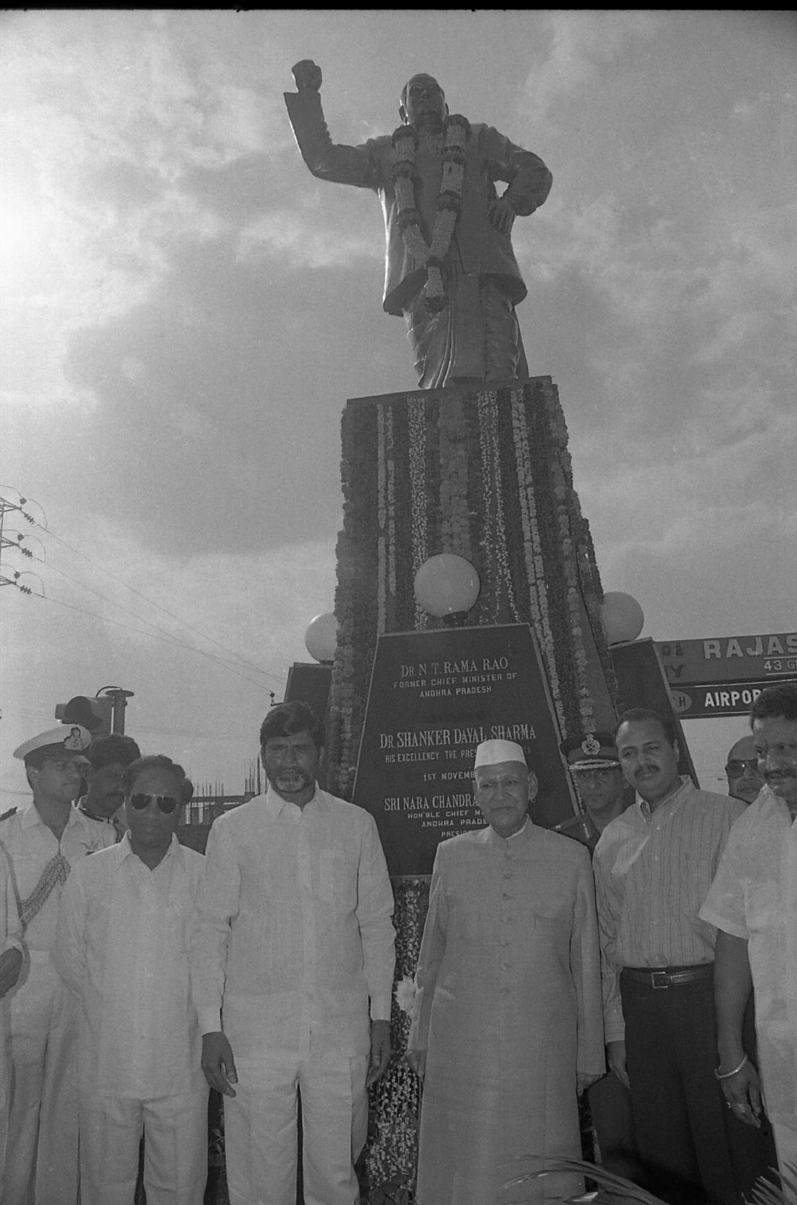 | Caption: | The President of India, Dr. Shankar Dayal Sharma unveiling the Statue of Late Dr. N.T. Rama Rao, at Rasoolpur 'X' Road, Begumpet, Secunderabad, in Andhra Pradesh on November 01, 1996. |