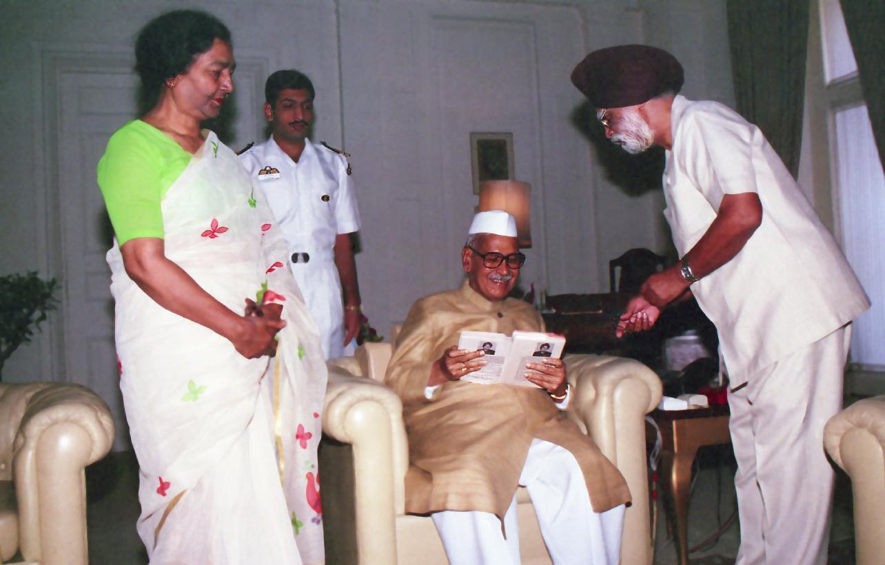 | Caption: | The President of India, Dr. Shankar Dayal Sharma receiving a copy of the book from Shri Raju at Rashtrapati Bhavan in New Delhi on September 22, 1994. |
