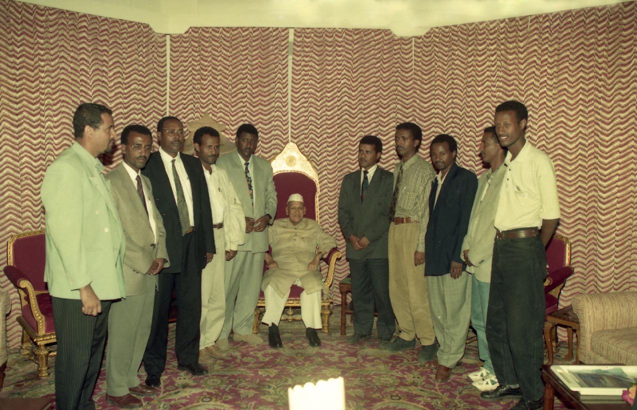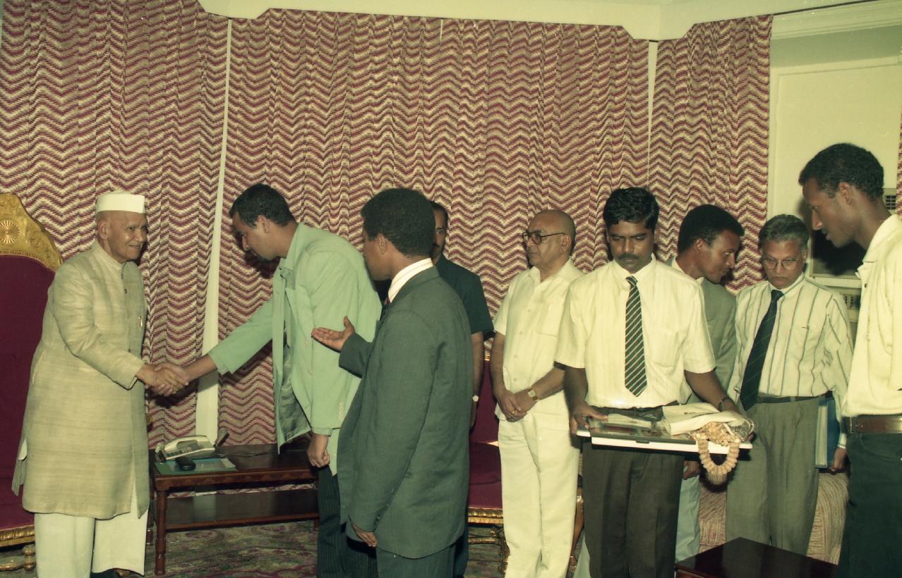 | Caption: | The President of India, Dr. Shankar Dayal Sharma meeting with Ethopian students of the Engineering Staff College of India alongwith Faculty members, at Rashtrapati Nilayam, in Secunderabad, Andhra Pradesh on November 02, 1996. |