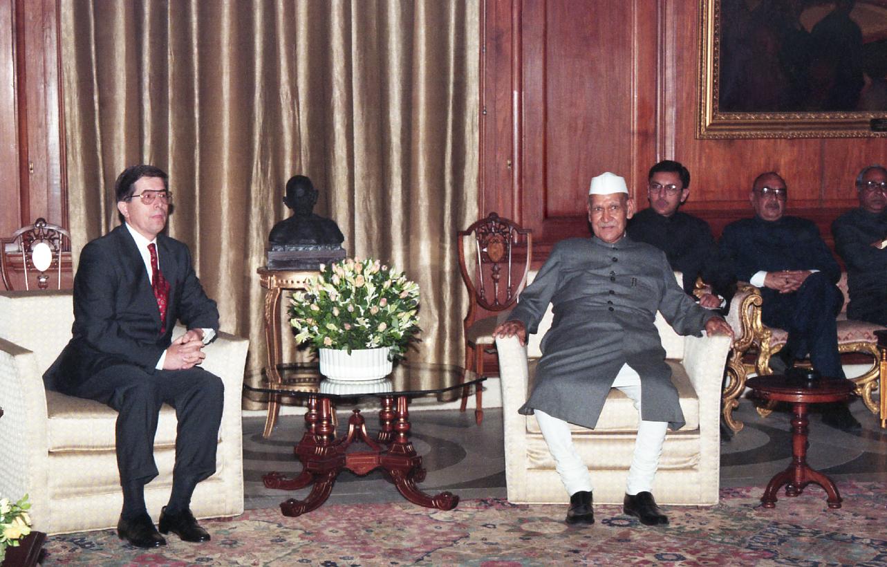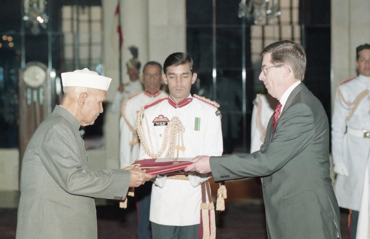 | Caption: | The Ambassador-Designate of Hungary to India, H.E. Mr. Andras Dallos presenting his credentials to the President of India, Dr. Shankar Dayal Sharma at Rashtrapati Bhavan in New Delhi on November 12, 1996. |