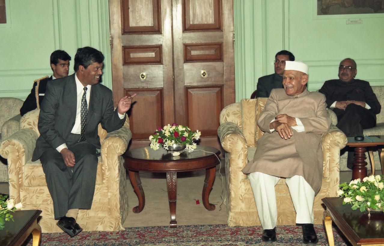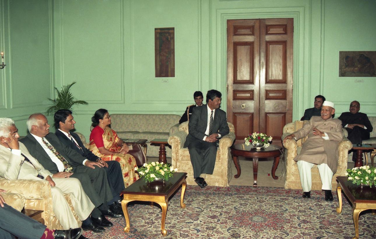 | Caption: | A Mauritian Parliamentary delegation led by Sir Ramesh Jeewoolal, Speaker of the Mauritian Parliament calling on the President of India, Dr. Shankar Dayal Sharma at Rashtrapati Bhavan in New Delhi on November 22, 1997. |