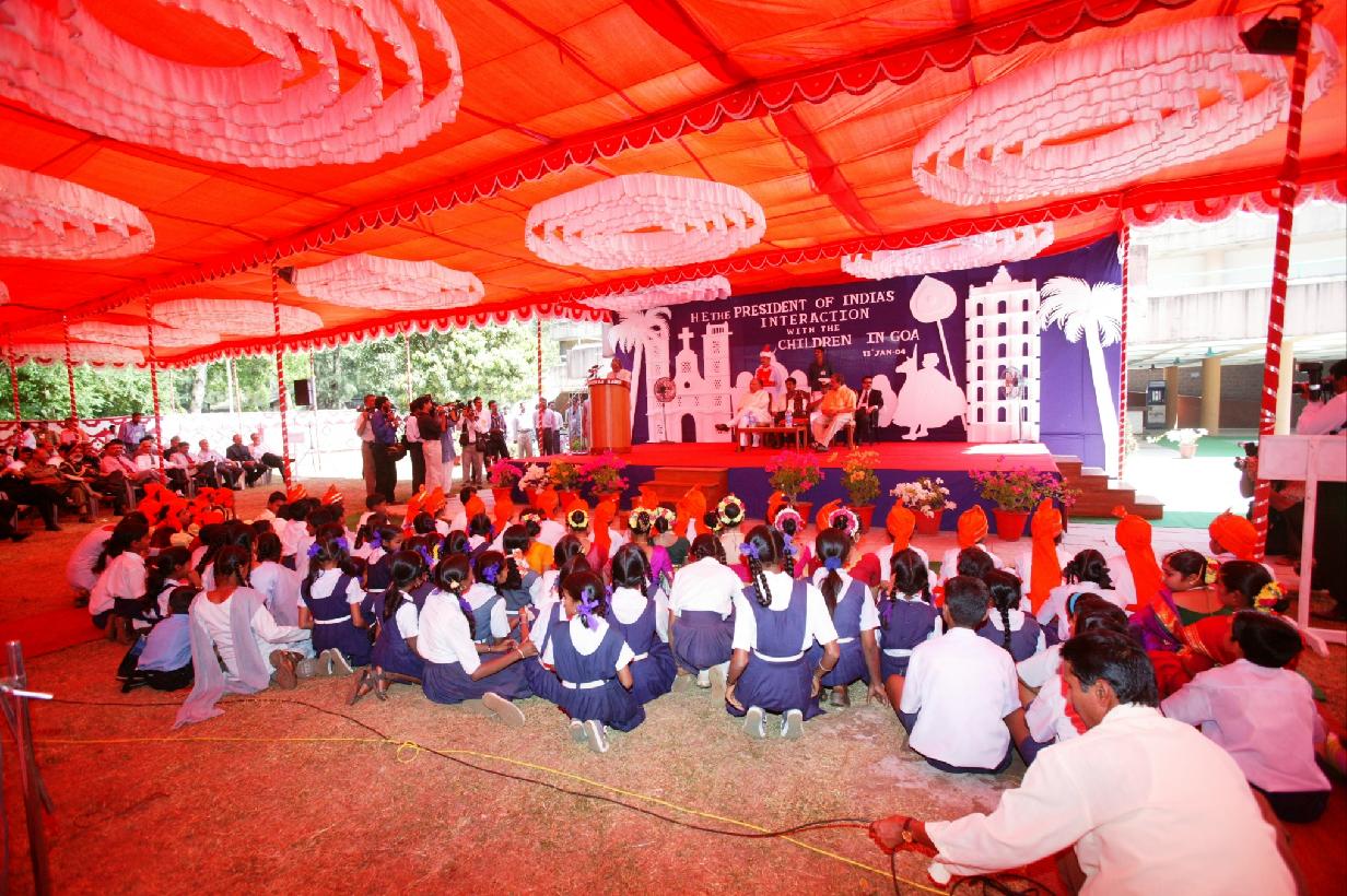 | Caption: | The President of India, Dr A P J Abdul Kalam interacting with the Children at Panaji in Goa on Jan 13, 2004 |