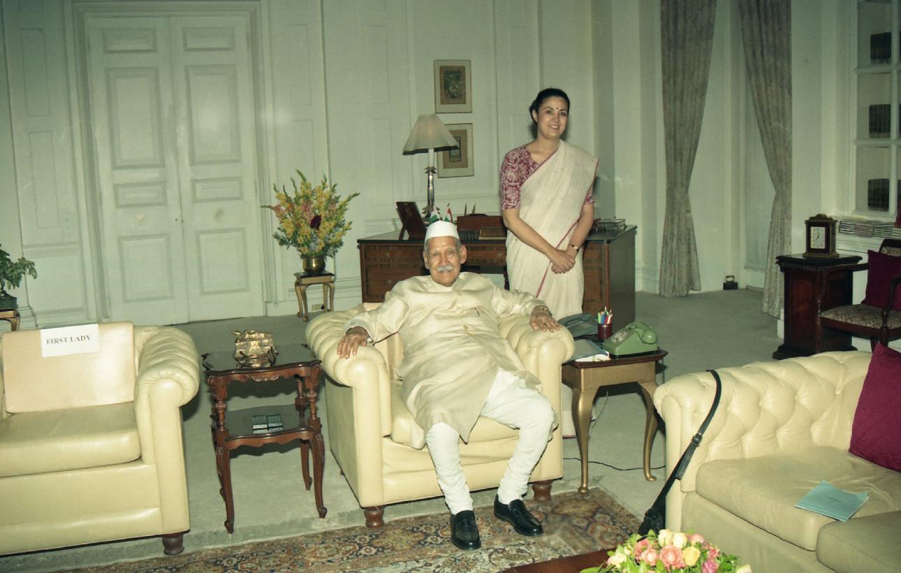 | Caption: | The President of India, Dr. Shankar Dayal Sharma meeting with Smt. Meera Shanker, former Director General ICCR at Rashtrapati Bhavan in New Delhi on July 17, 1997 |