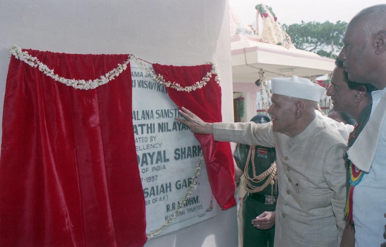 | Caption: | The President of India, Dr. Shankar Dayal Sharma Inaugurating the Padmavathi Nilayam, in Tirupti, Andhra Pradesh on July 18, 1997 |
