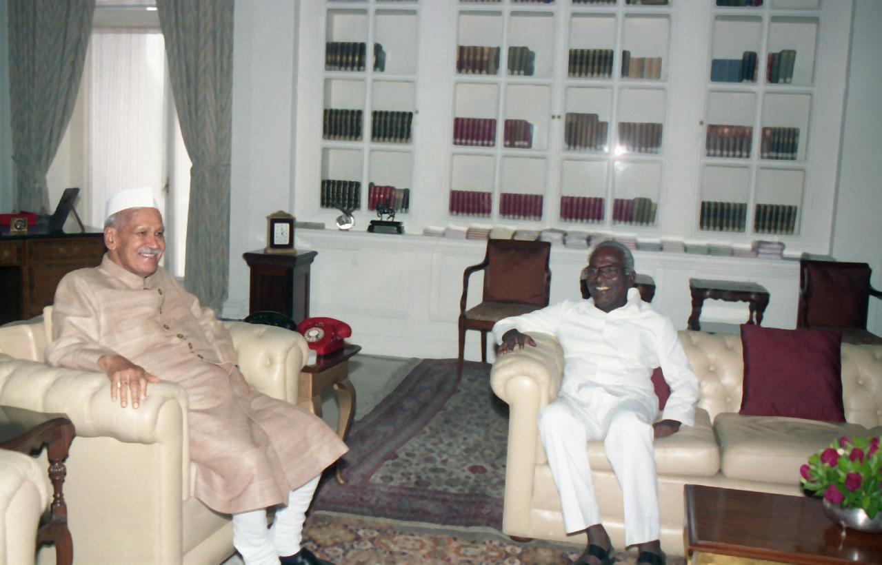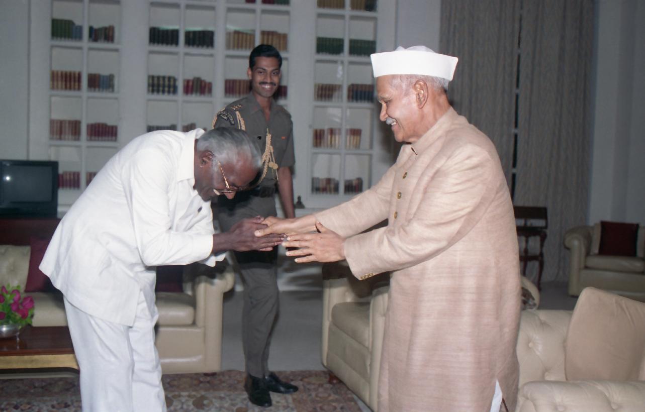 | Caption: | The President of India, Dr. Shankar Dayal Sharma meeting with Shri P. Shiv Shankar, Governor designate to Sikkim at Rashtrapati Bhavan in New Delhi on September 19, 1994. |