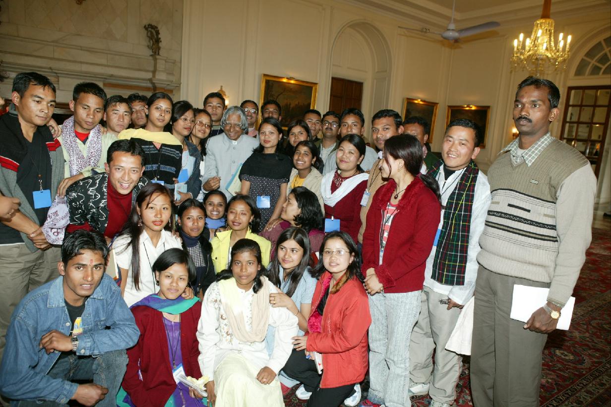 | Caption: | The Students from North-Eastern States participating in the India Tour Experience organised by the Akhil Bharatiya Vidyarthi Parishad calling on the President of India, Dr A P J Abdul Kalam at the Yellow Drawing Room of Rashtrapati Bhavan in New Delhi on Jan 15, 2004 |