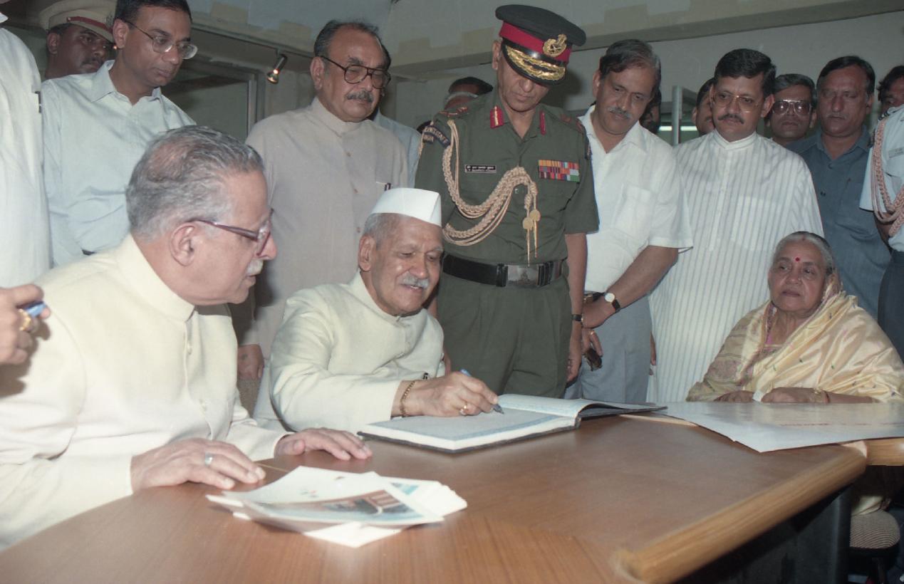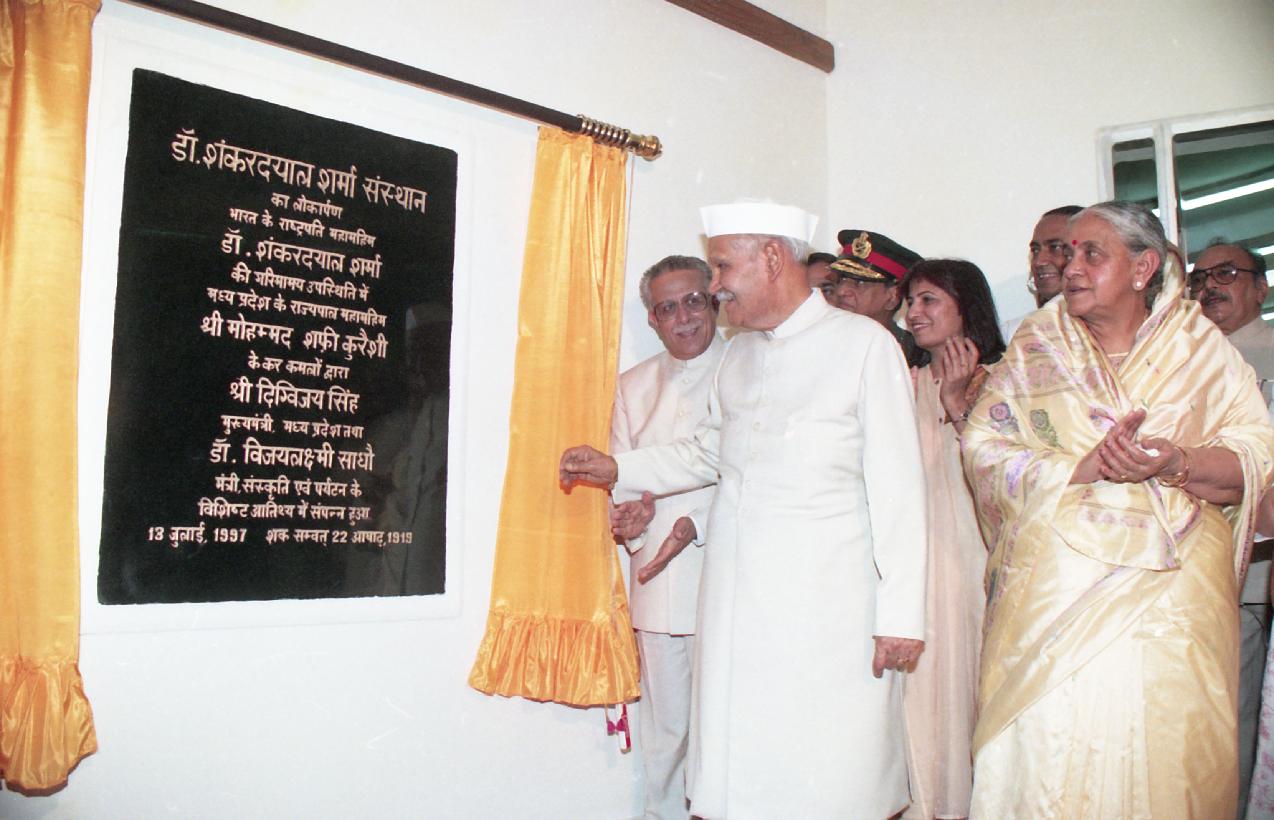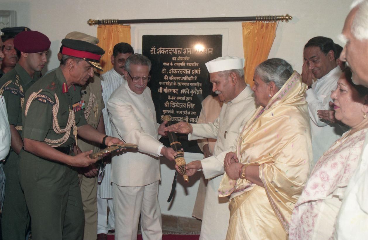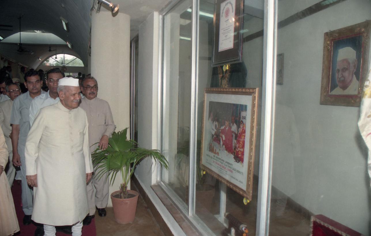 | Caption: | The President of India, Dr. Shankar Dayal Sharma dedicating the President's Library and Mementos to the Public and inaugurated the Swaraj Bhavan at Bhopal on July 13, 1997 |