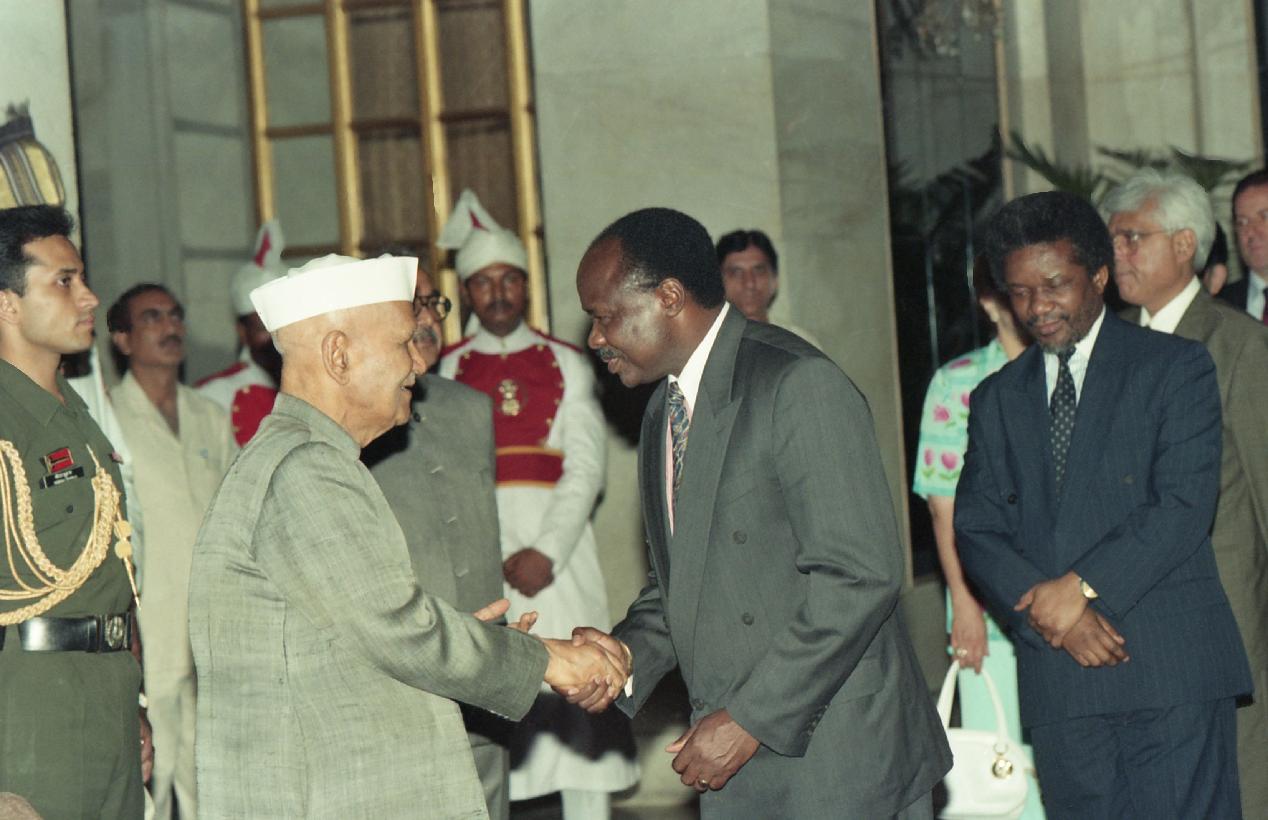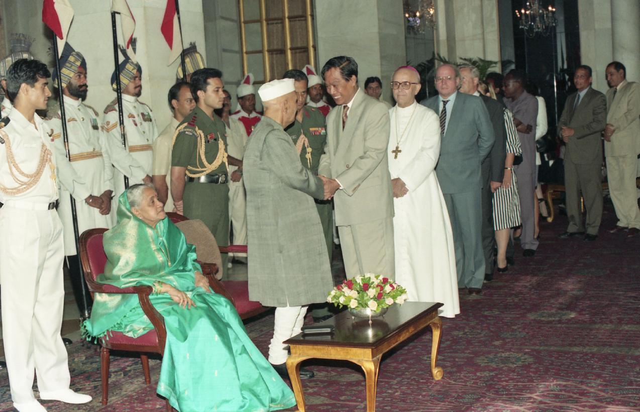 | Caption: | The President of India, Dr. Shankar Dayal Sharma meeting with Heads of Diplomatic Missions and their Spouses, during 'At Home' at Rashtrapati Bhavan in New Delhi on July 23, 1997 |