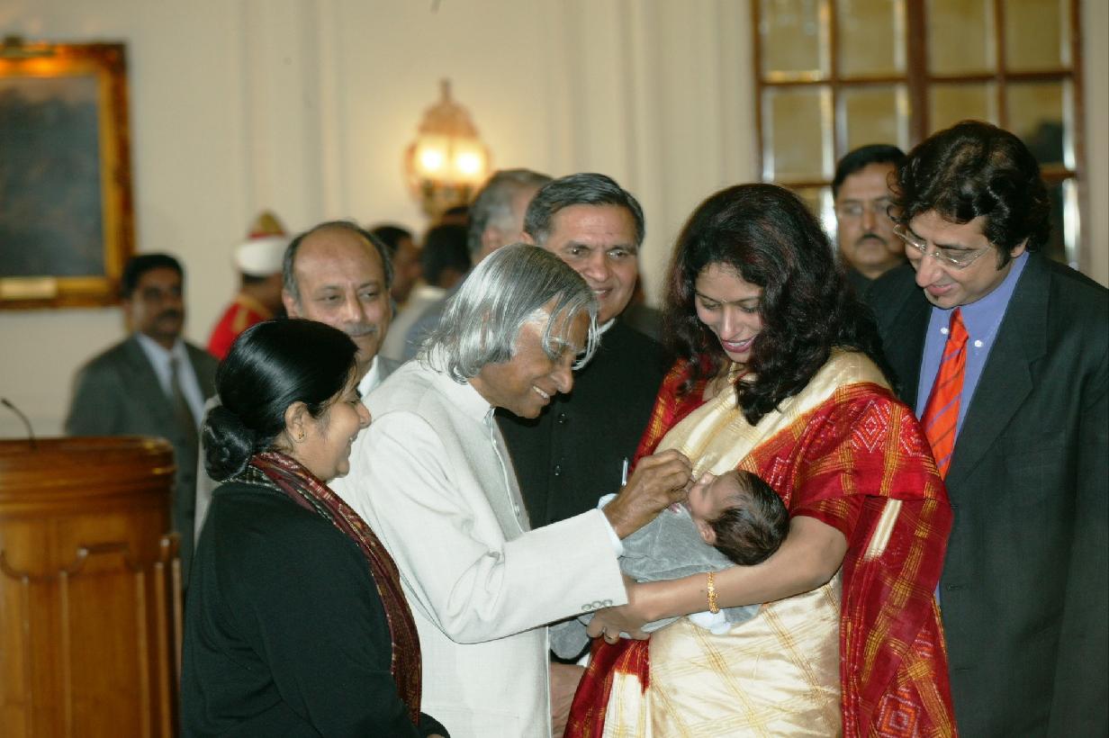 | Caption: | The President of India, Dr A P J Abdul Kalam inaugurating the Sub National Immunisation Day by administering Polio Vaccine to the children at the Yellow Drawing Room of Rashtrapati Bhavan in New Delhi on Jan 03, 2004 |