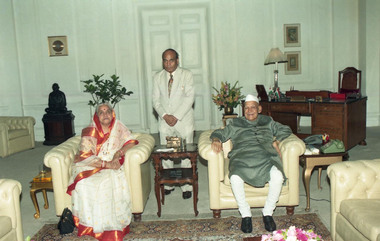 | Caption: | The President of India, Dr. Shankar Dayal Sharma meeting with Dr. Ramesh Sharma at Rashtrapati Bhavan in New Delhi on July 21, 1997 |