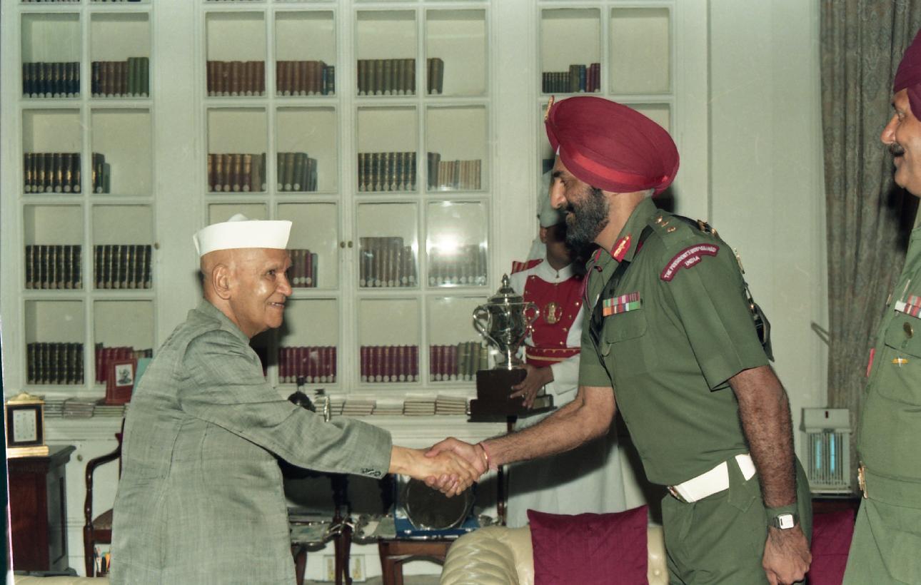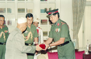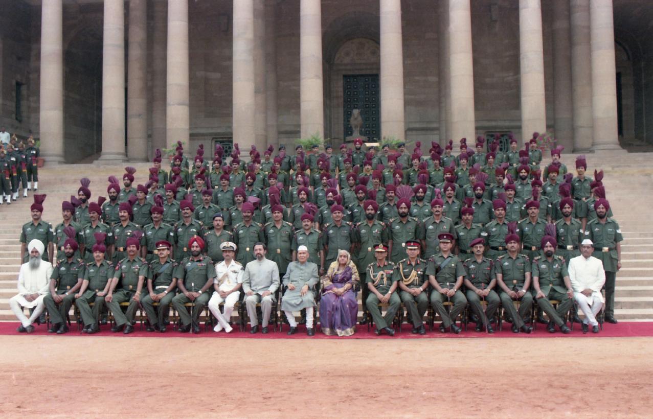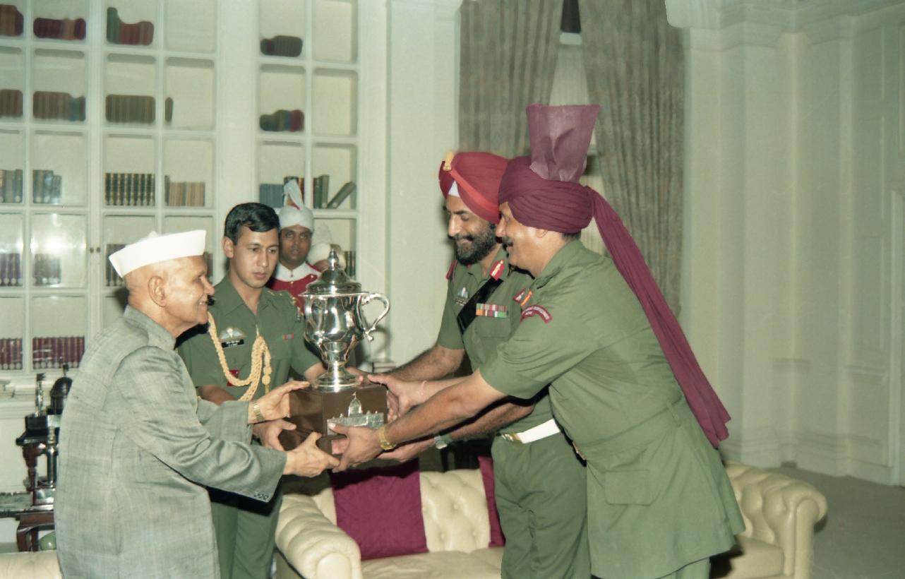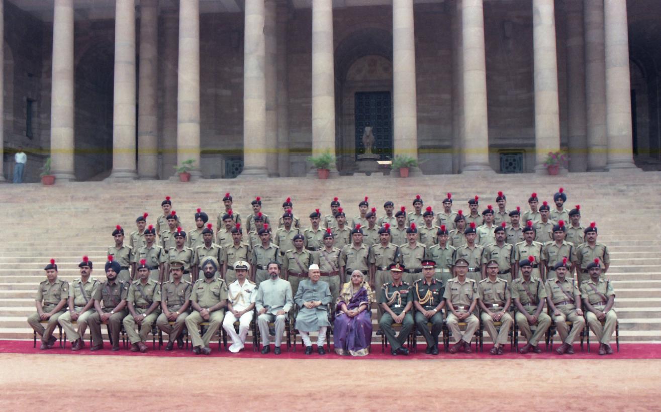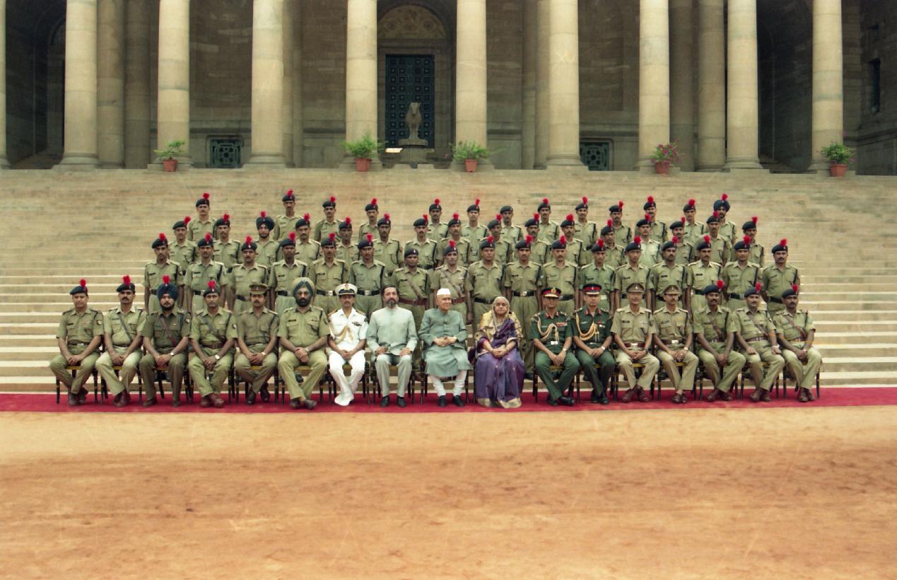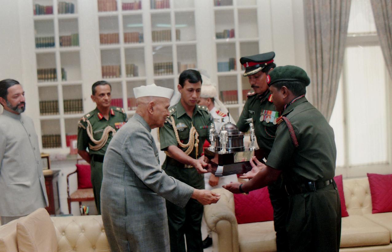 | Caption: | The President of India, Dr. Shankar Dayal Sharma presenting mementos to the PBG and 4 Bihar and poses for group photograph with Rashtrapati Bhavan staff and others, at Rashtrapati Bhavan in New Delhi on July 18, 1997 |