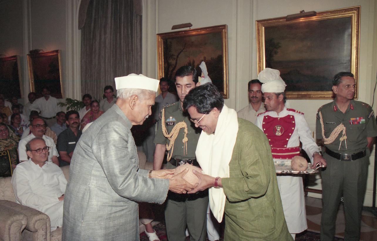 | Caption: | The President of India, Shri Shankar Dayal Sharma witnessing the Kaka Hathrasee Smarak Rashtriya Kavi Sammelan organised by Chaturved Brij Vikas Samaj at Rashtrapati Bhavan in New Delhi on May 05, 1996. |