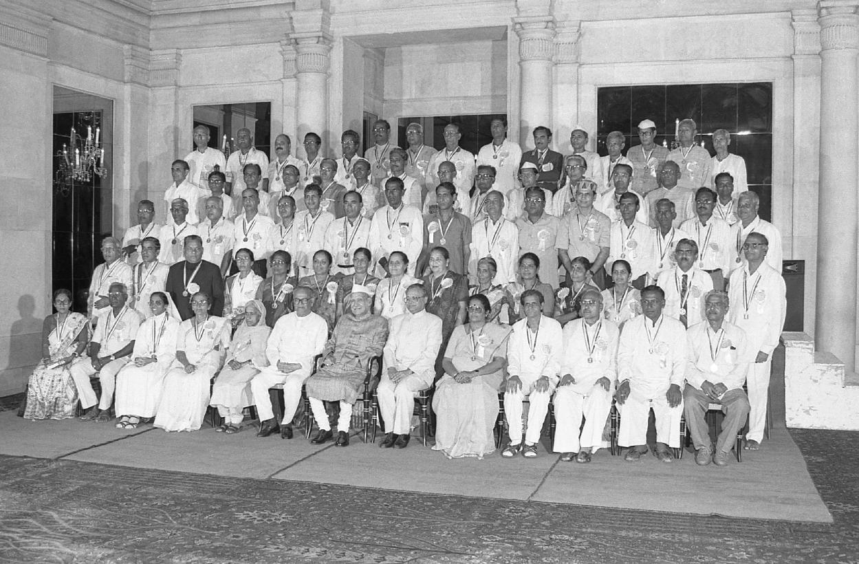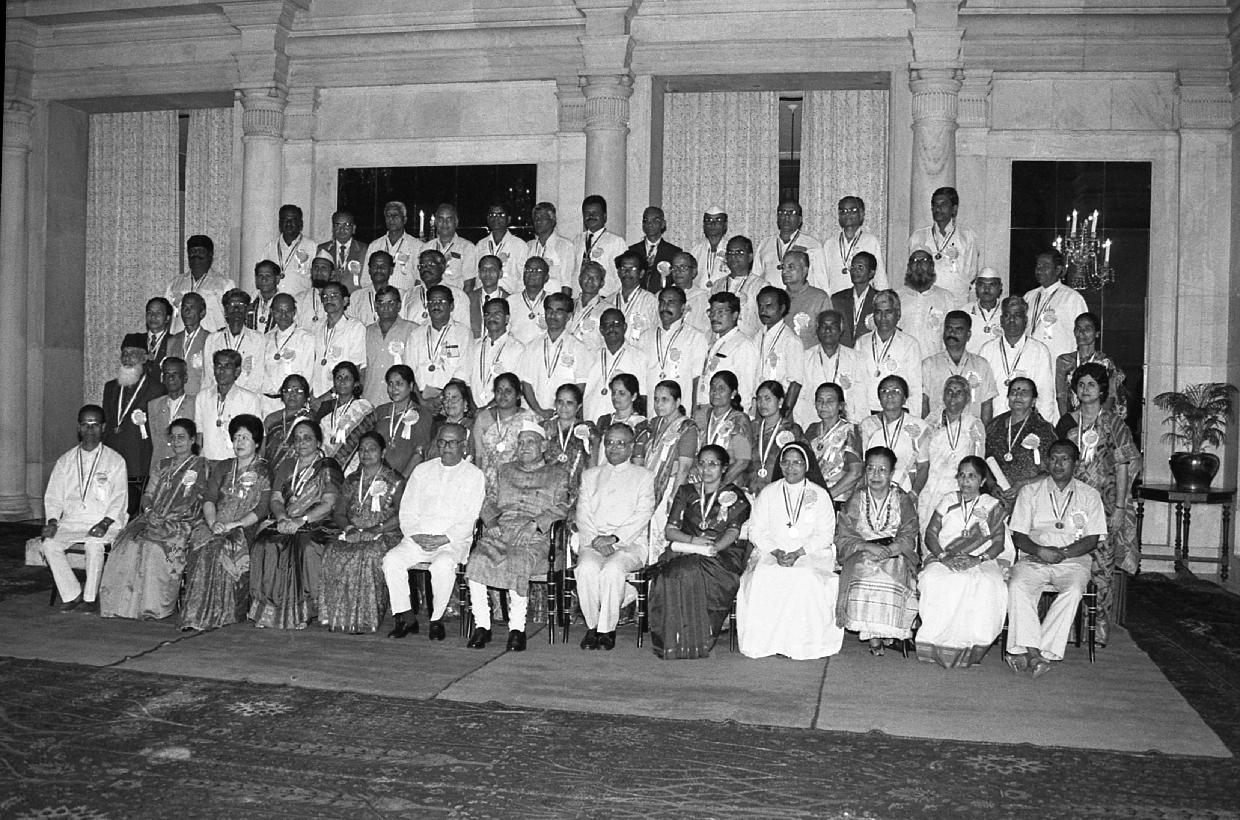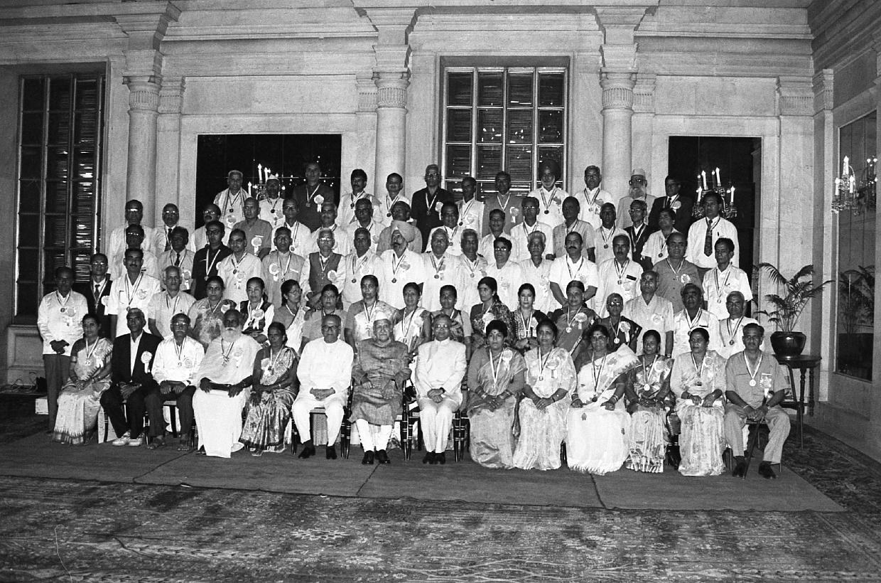 | Caption: | The President of India, Dr. Shankar Dayal Sharma in group photographs with the National Award winning Teachers for the Year 1995 at Rashtrapati Bhavan in New Delhi on September 05, 1996. |