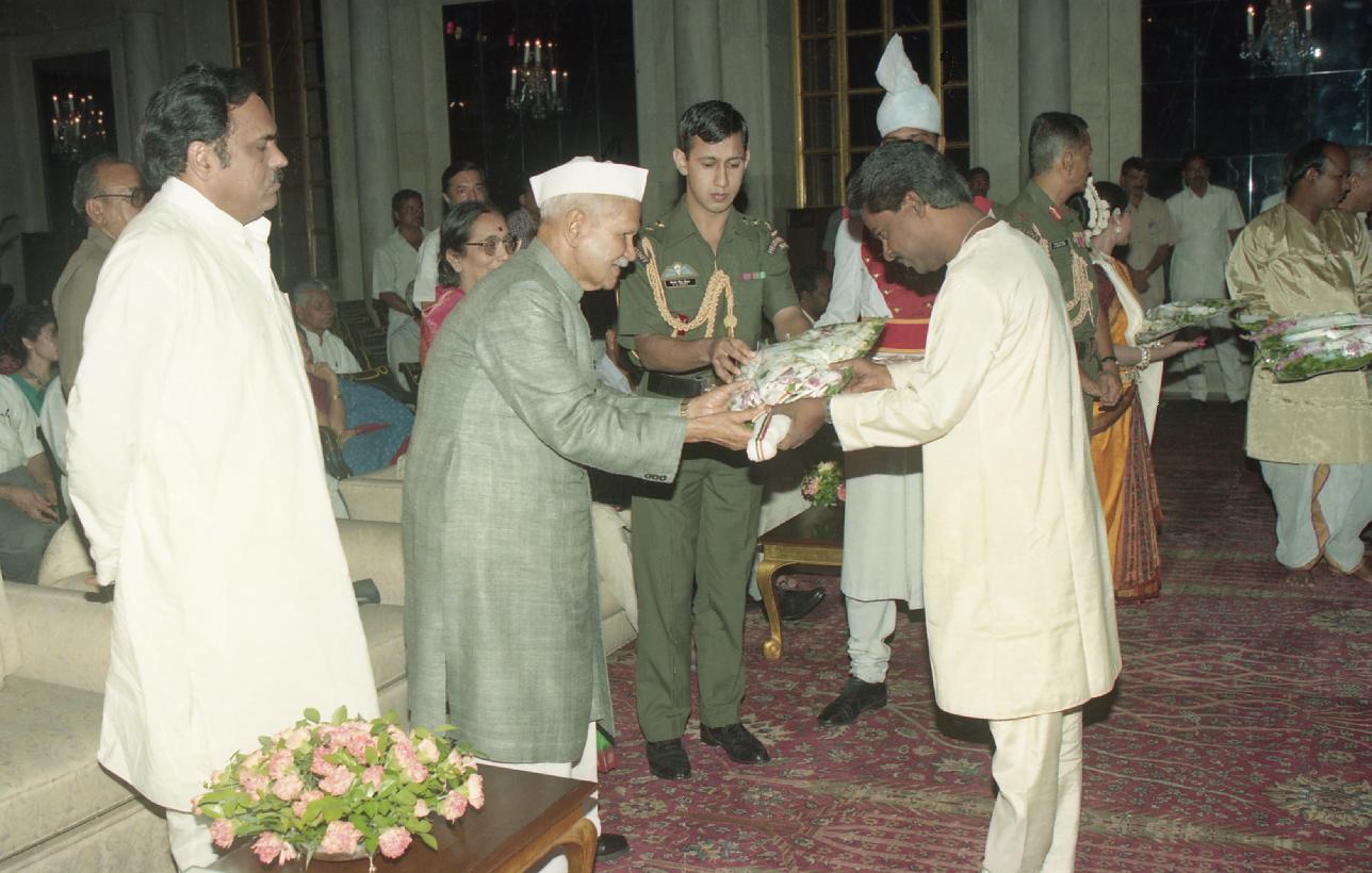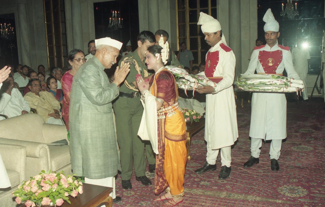 | Caption: | The President of India, Dr. Shankar Dayal Sharma witnesssing the Odissi Dance programme of Ms. Kavita Dwibedi and felicitating Artists, at Rashtrapati Bhavan in New Delhi on September 09, 1996. |