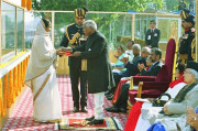 | Caption: | The President of India, Shri K R Narayanan witnessing the Republic Day Parade on the eve of Republic Day at Rajpath in New Delhi on Jan 26, 2002 |