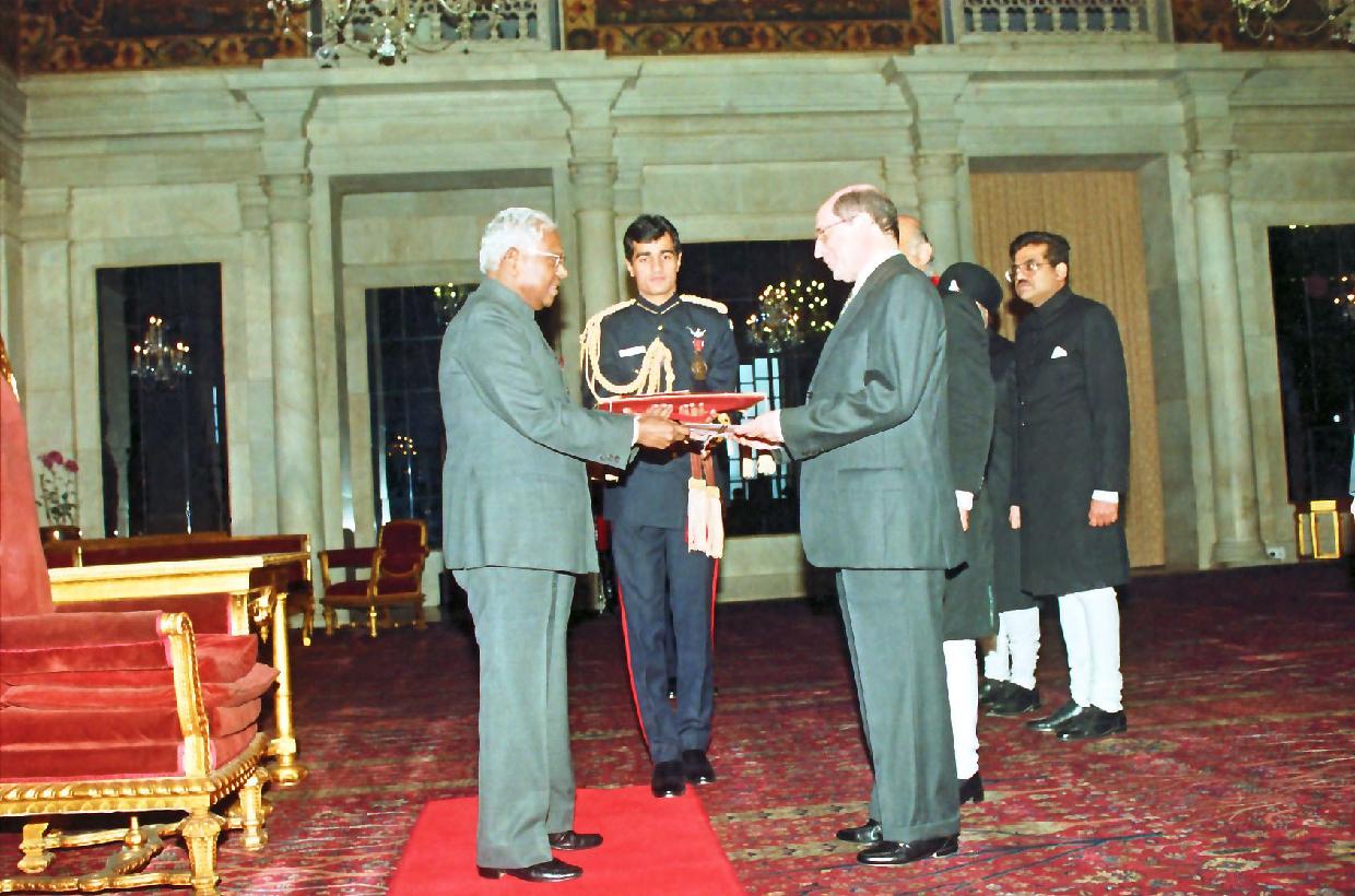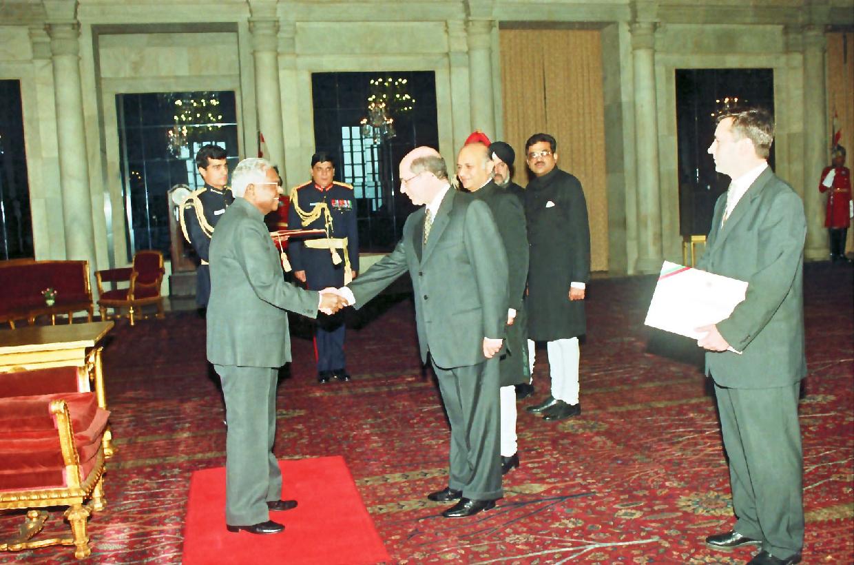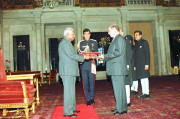 | Caption: | The Ambassador-Designate of Portugal to India, HE Dr Manuel Marcelo Monteiro Curto presenting his credentials to the President of India, Shri K R Narayanan at the Ashok Hall of Rashtrapati Bhavan in New Delhi on Nov 27, 1997 |
