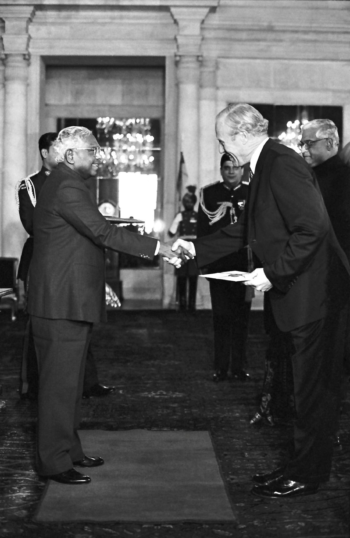| Caption: | The High Commissioner-Designate of Australia to India, HE Mr Robert Stephen Laurie presenting his credentials to the President of India, Shri K R Narayanan at the Ashok Hall of Rashtrapati Bhavan in New Delhi on Nov 28, 1997 |