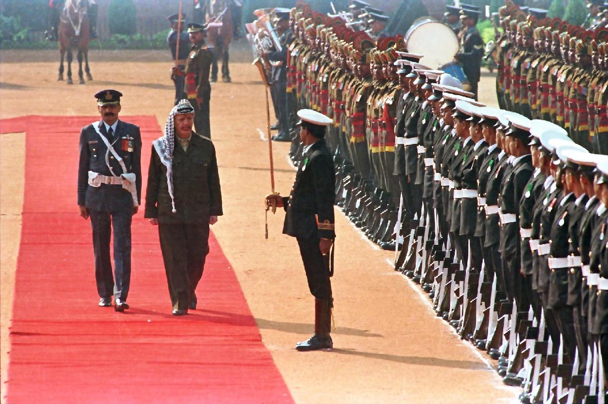 | Caption: | The President of India, Shri K R Narayanan at the Ceremonial Reception of President of the State of Palestine, HE Mr Yasir Arafat at the Forecourt of Rashtrapati Bhavan in New Delhi on Nov 20, 1997 |
