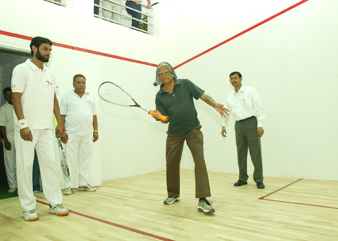 | Caption: | The President of India, Dr A P J Abdul Kalam visiting the Squash Court of President's Secretariat Officers Institute at the Rashtrapati Bhavan in New Delhi on April 07, 2004 |