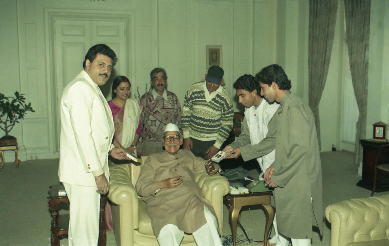 | Caption: | The President of India, Dr. Shankar Dayal Sharma receiving Audio Cassette from Shri Ahmed Hussain with others at Rashtrapati Bhavan in New Delhi on November 28, 1996. |