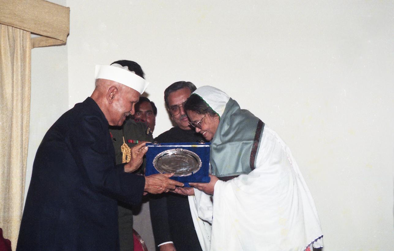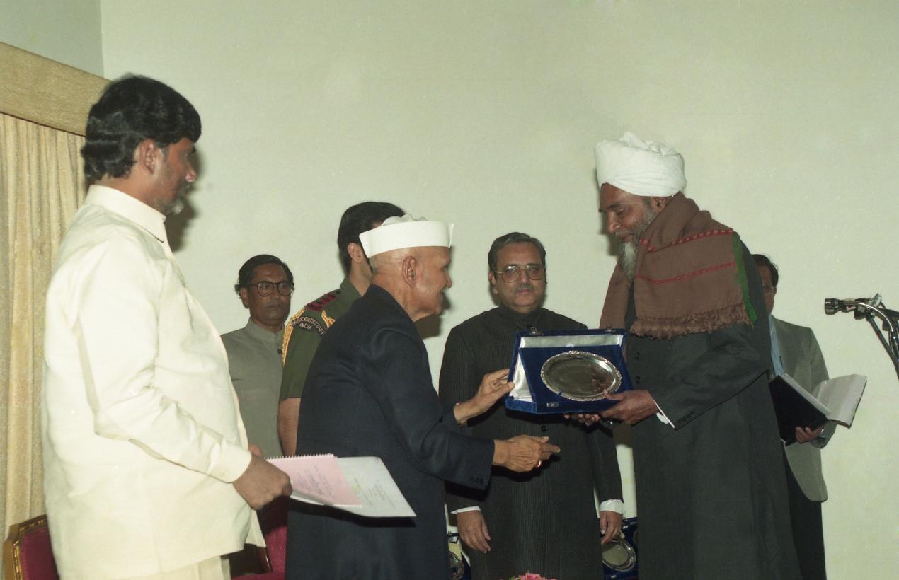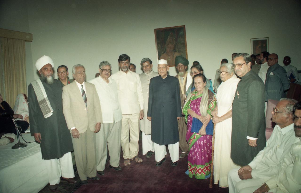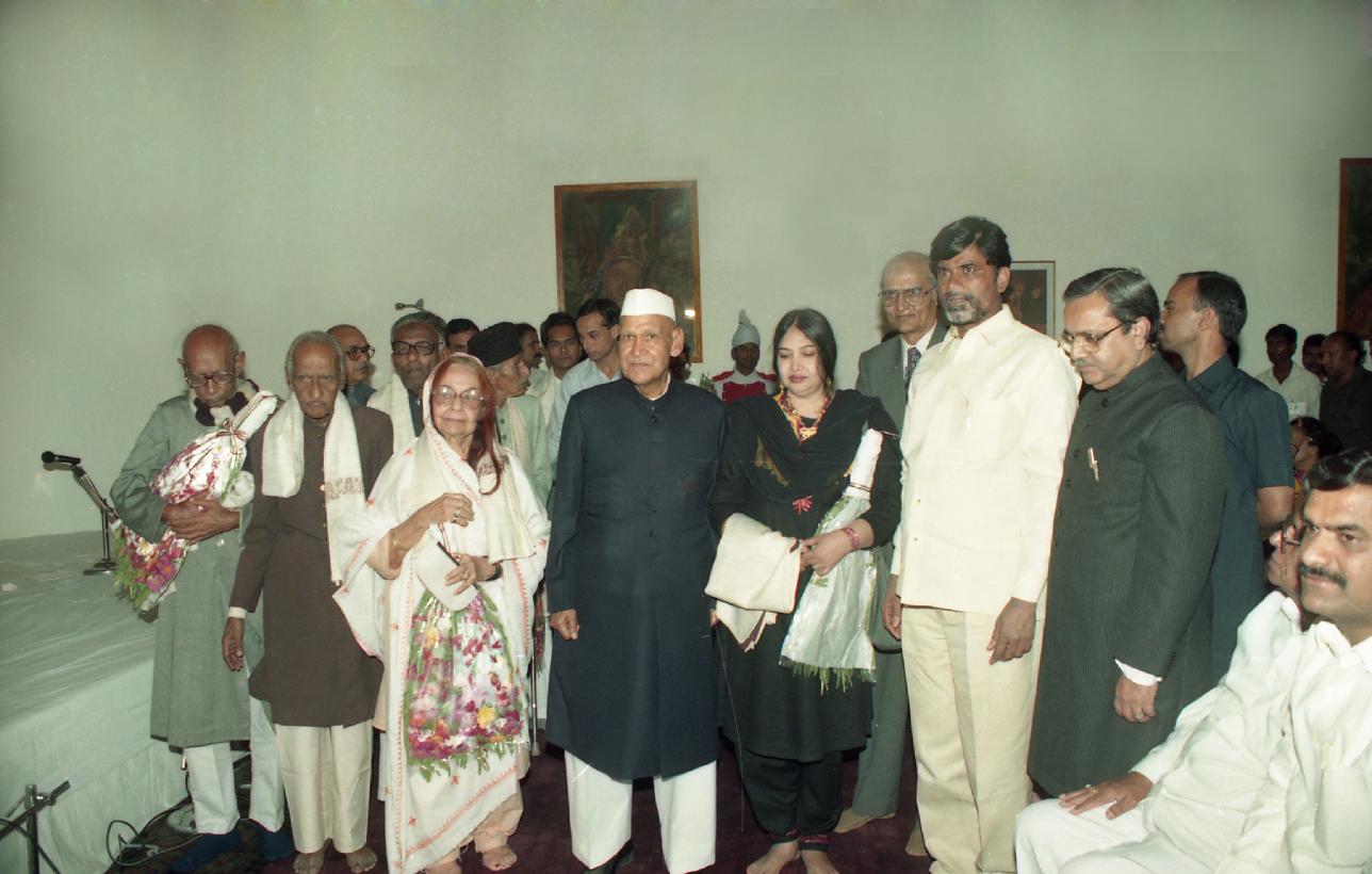 | Caption: | The President of India, Dr. Shankar Dayal Sharma honouring Persian, Arabic and Urdu Scholars, at Rashtrapati Nilayam, in Secunderabad, Andhra Pradesh on November 02, 1996. |