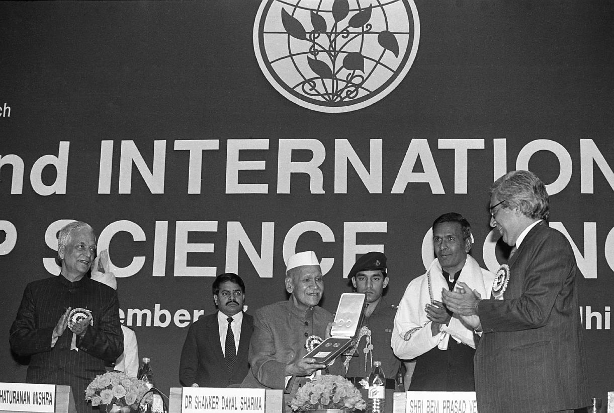 | Caption: | The President of India, Dr. Shankar Dayal Sharma inaugurating the 2nd International Crop Science Congress at Vigyan Bhavan in New Delhi on November 17, 1996. |