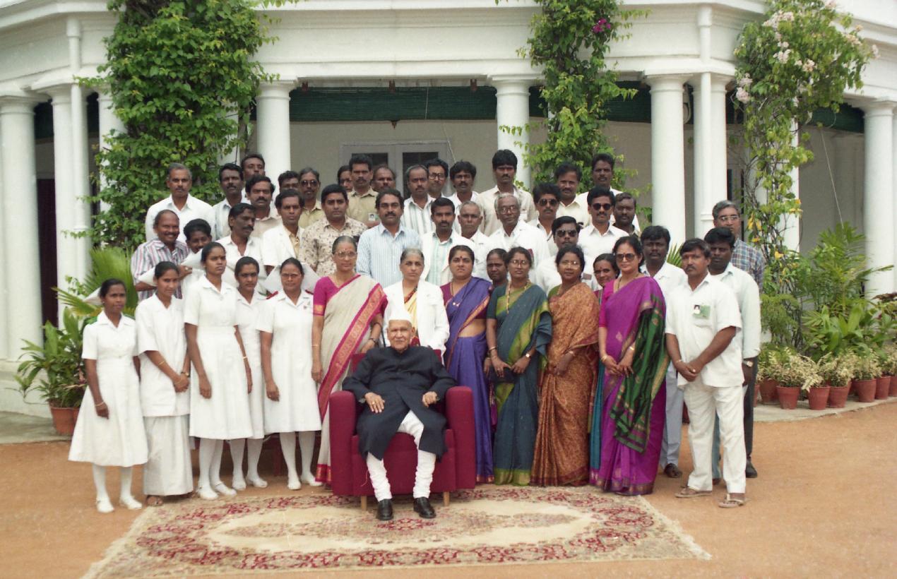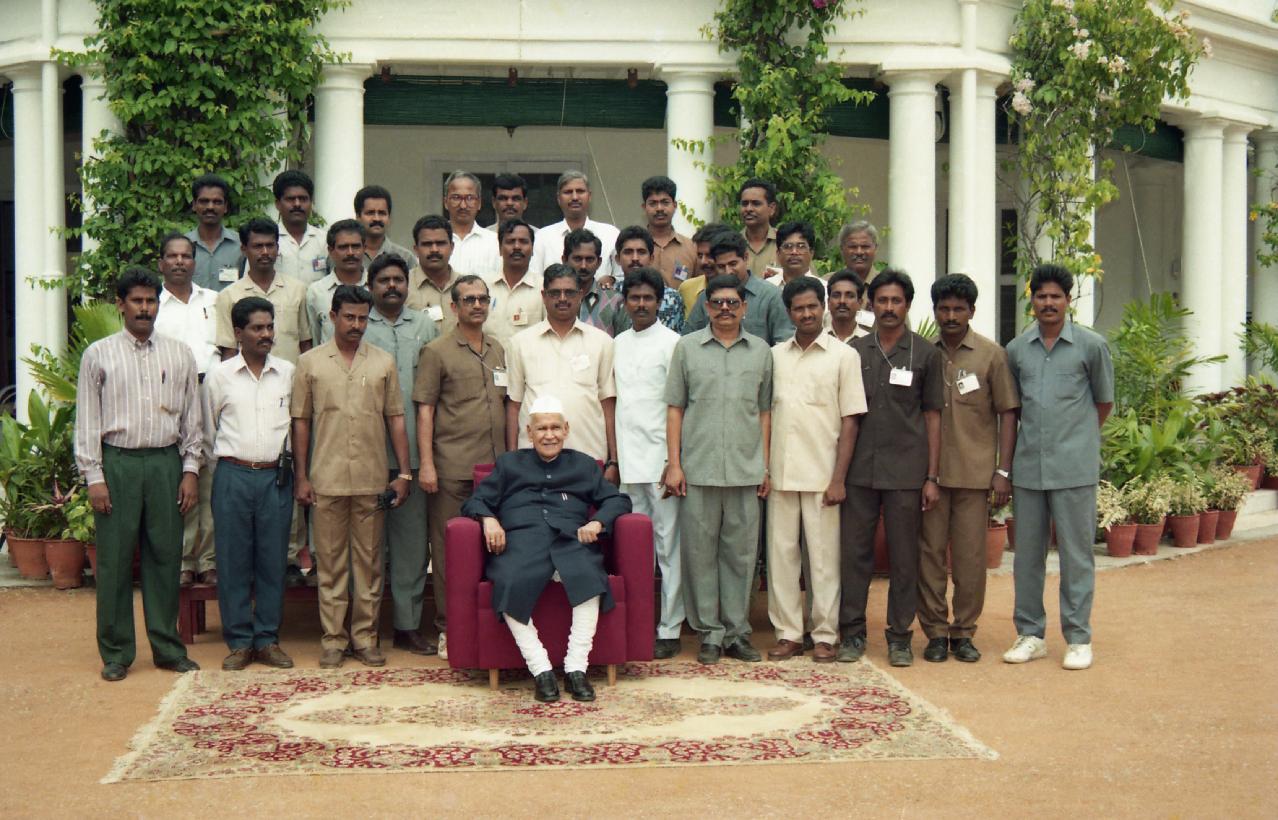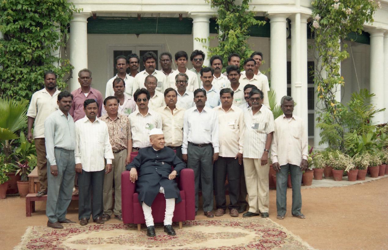 | Caption: | The President of India, Dr. Shankar Dayal Sharma in group photographs with the Officers and Staff of Rashtrapati Nilayam, in Hyderabad on November 07, 1996. |