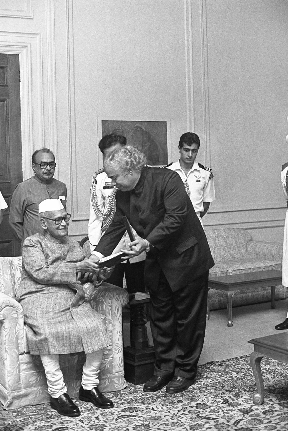 | Caption: | The President of India, Dr. Shankar Dayal Sharma receiving a copy of the book "Salli Ala Muhammad" published by Darrul Quran Publishers Pvt. Ltd. at Rashtrapati Bhavan in New Delhi on September 23, 1996. |