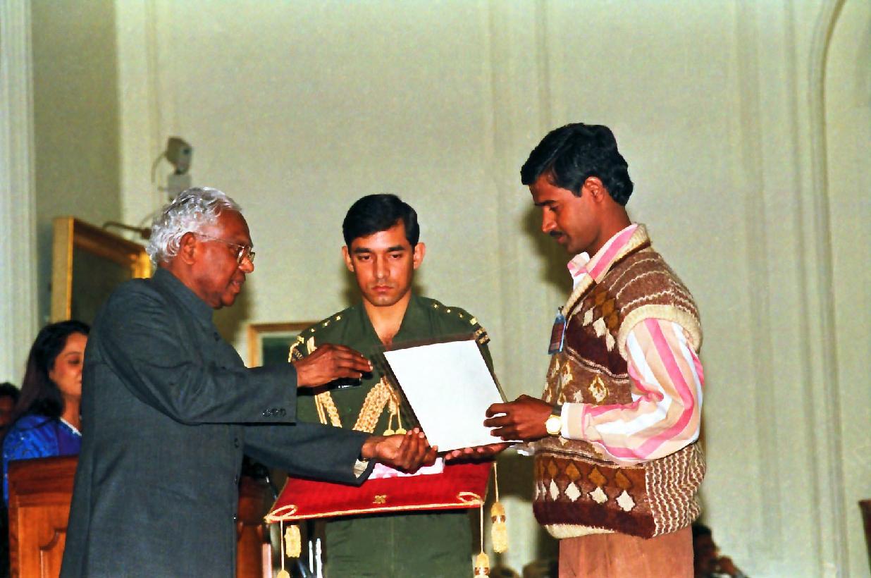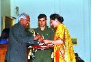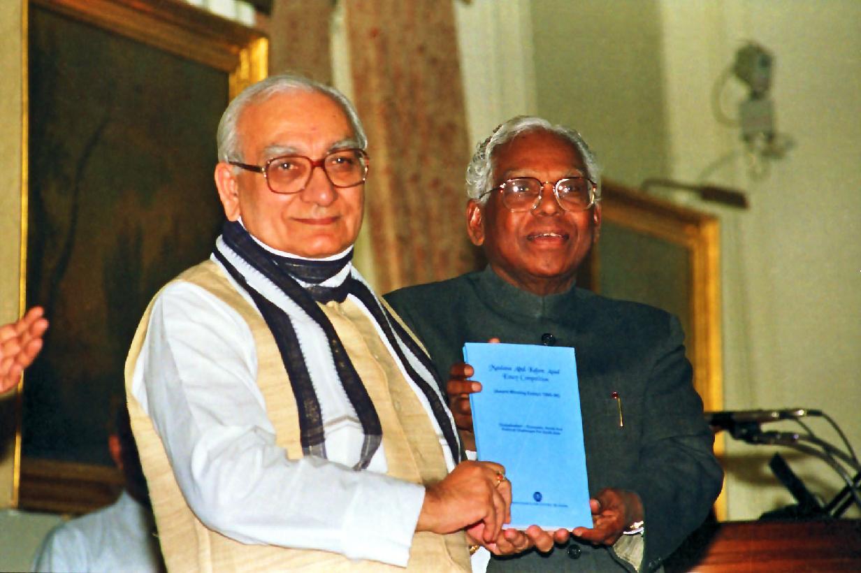 | Caption: | The President of India, Shri K R Narayanan presenting the Maulana Abul Kalam Azad Essay Award at Rashtrapati Bhavan in New Delhi on Nov 11, 1997 |