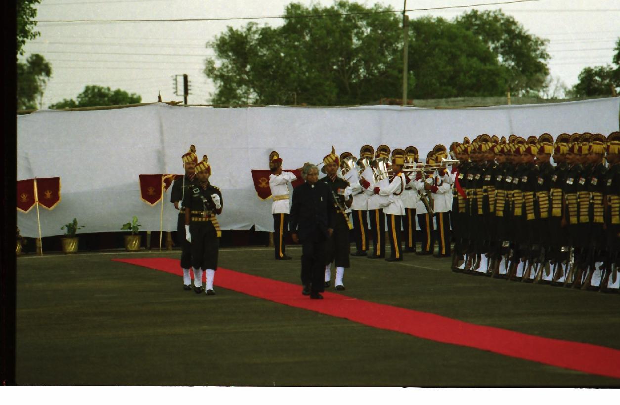 | Caption: | The President of India, Dr A P J Abdul Kalam at the Ceremonial Arrival at Bhopal Airport in Madhya Pradesh on Sep 05, 2002 |