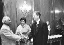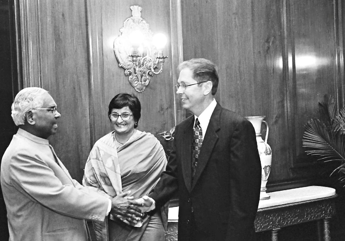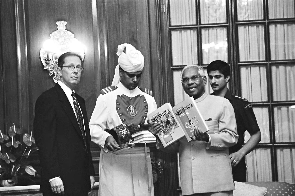 | Caption: | The President of India, Shri K R Narayanan receiving a Copy of the Book "Students Britannica India" at the Committee Room of Rashtrapati Bhavan in New Delhi on July 28, 2000 |