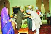 | Caption: | The President of India, Shri K R Narayanan at the Gurbani Recital by Bhai Ajit Singh Bibi Jaswinder Kaur and Party on the occasion of Birthday of Guru Nanak Dev Ji at the Yellow Drawing Room of Rashtrapati Bhavan in New Delhi on Nov 14, 1997 |