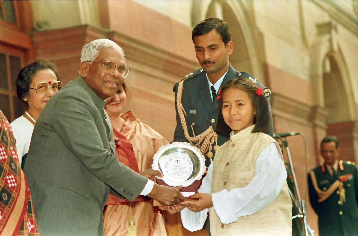 | Caption: | The President of India, Shri K R Narayanan presenting the National Bal Shree Awards at the East Lawn of Rashtrapati Bhavan in New Delhi on Nov 18, 1997 |
