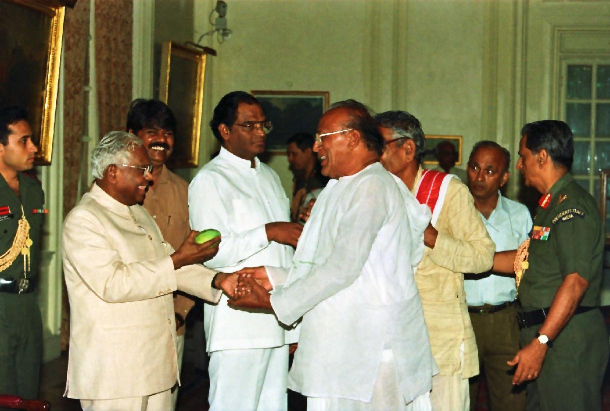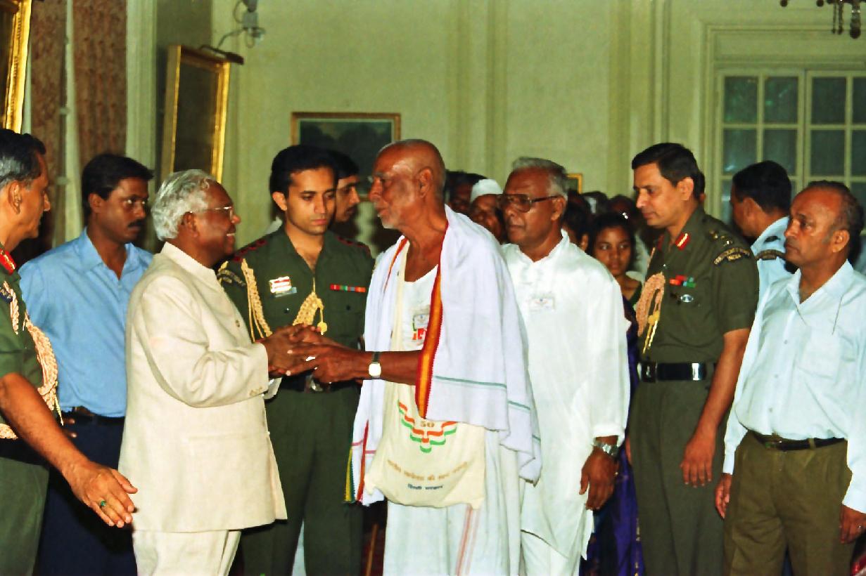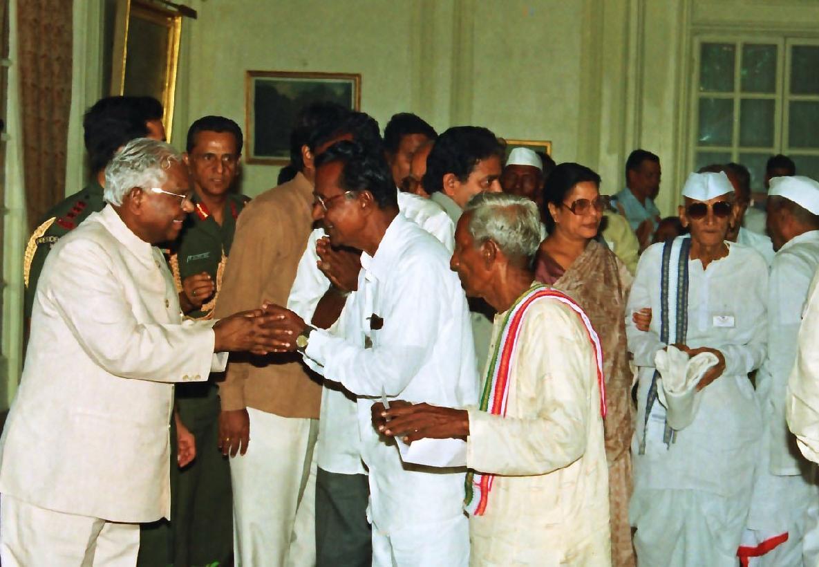| Caption: | The President of India, Shri K R Narayanan meeting with the Delegation of Freedom Fighters from Andhra Pradesh led by Shri P Upendra at the Yellow Drawing Room of Rashtrapati Bhavan in New Delhi on Aug 16, 1997 |