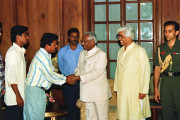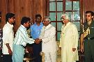 | Caption: | The President of India, Shri K R Narayanan meeting with the Delegation from Freedom Fighters Cell from Goa Minister of Law and Justice led by Shri Ramakant D Khalap at the Committee Room of Rashtrapati Bhavan in New Delhi on Aug 16, 1997 |