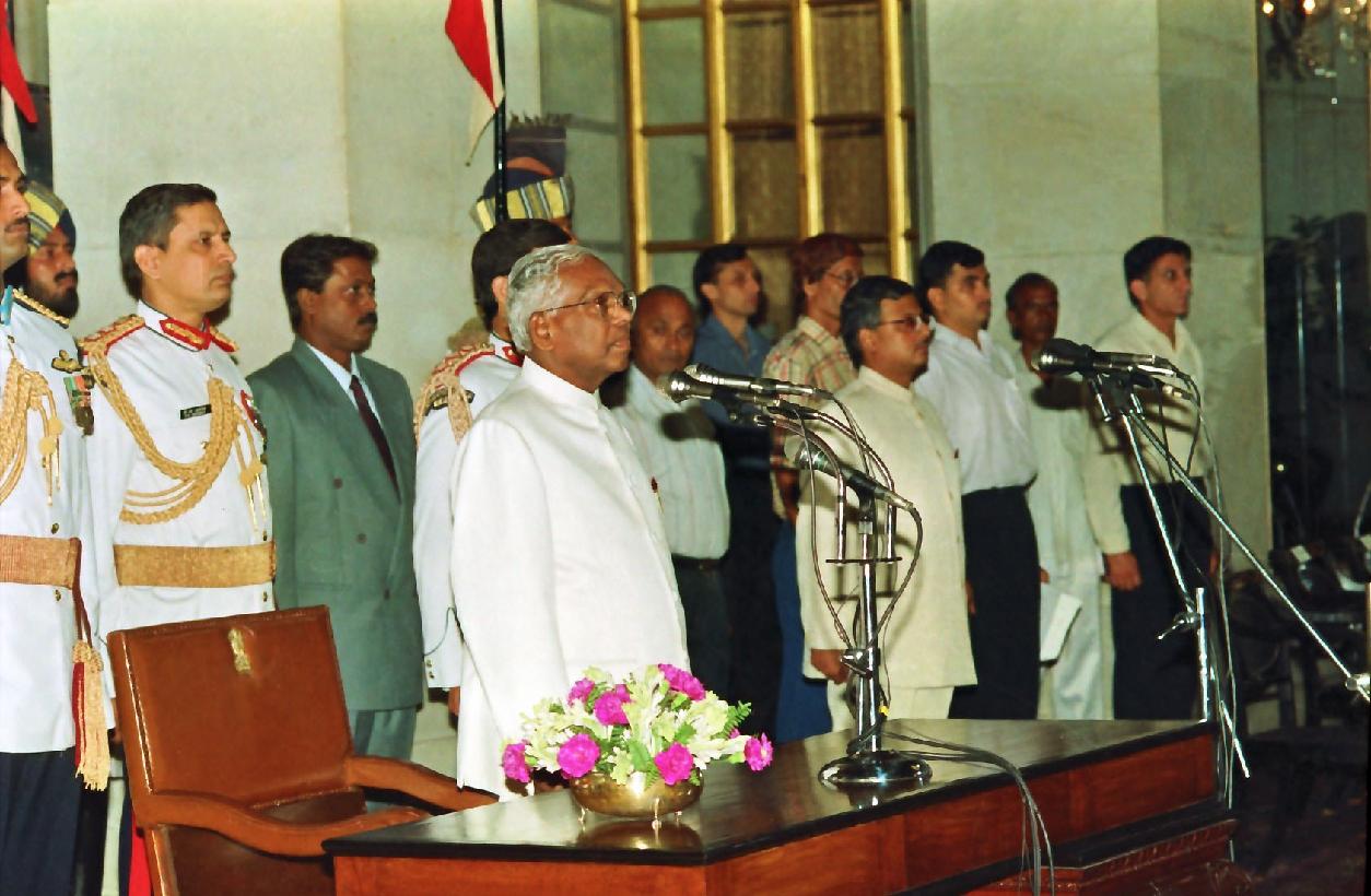 | Caption: | The President of India, Shri K R Narayanan at a Swearing-in-Ceremony of the Vice President of India, Shri Krishan Kant at the Ashok Hall of Rashtrapati Bhavan in New Delhi on Aug 21, 1997 |